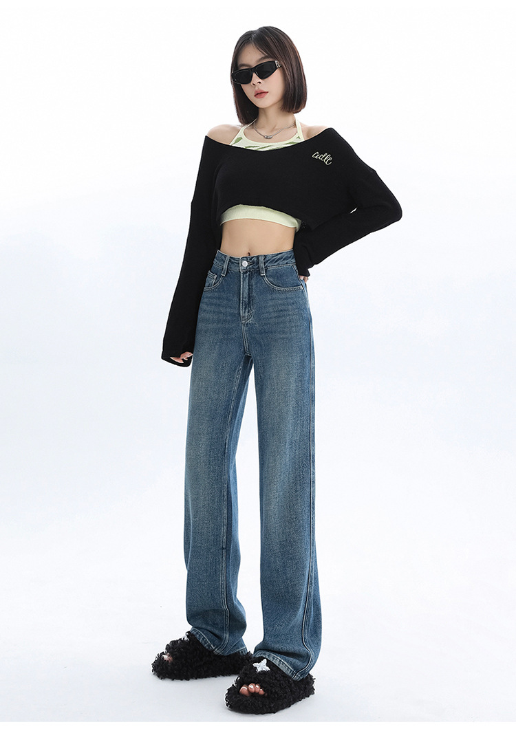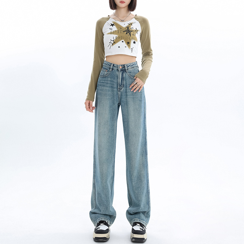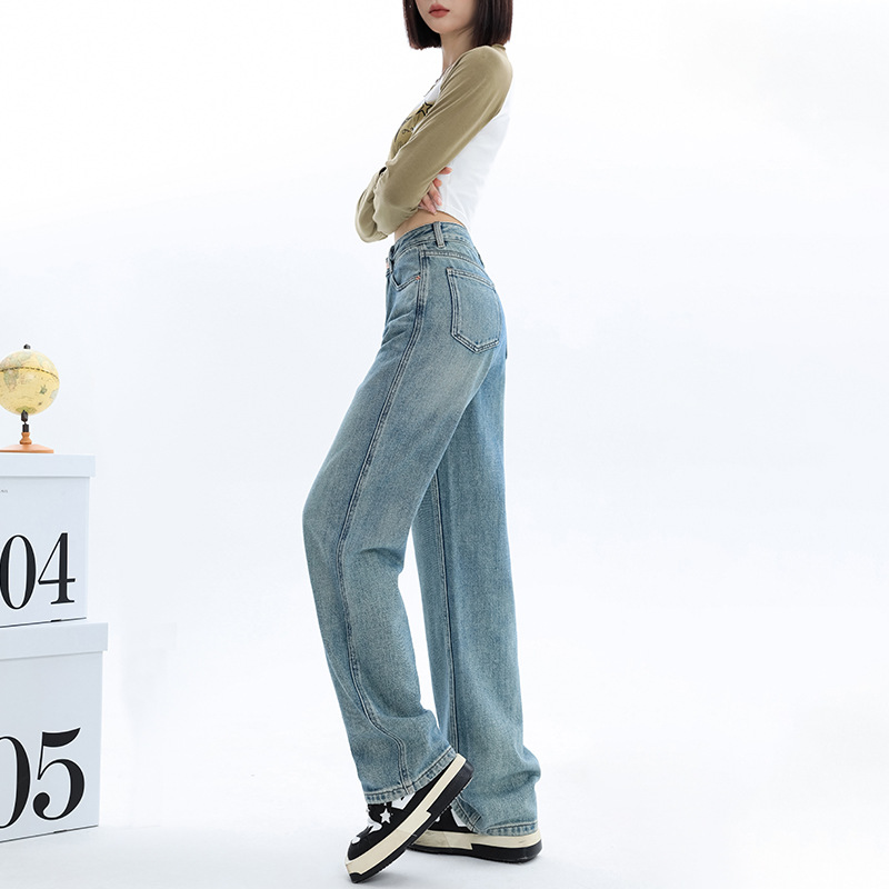 【今茵】여성용 데님 팬츠 가을 겨울 기모 안감 슬림핏 와이드 팬츠 하이웨이스트 드레이프 롱 팬츠 두꺼운 일자 팬츠스토어 가기