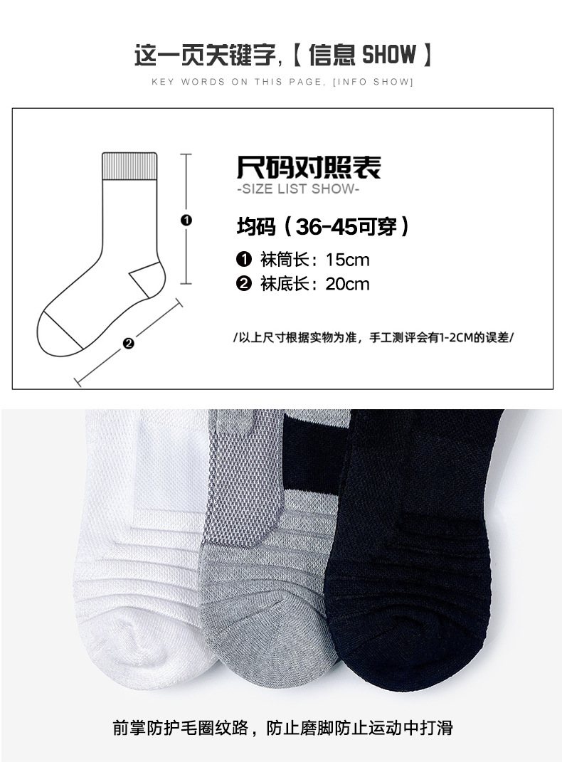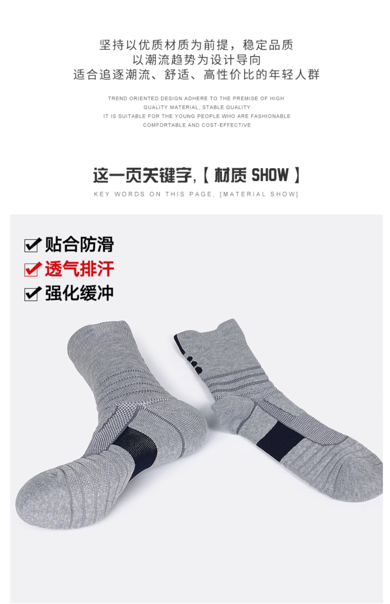 농구 양말 남성용 땀 흡수 엘리트 양말 중간 길이 하이탑 러닝 아웃도어 양말 스포츠 양말 미끄럼 방지 폴리에스터 면 소재