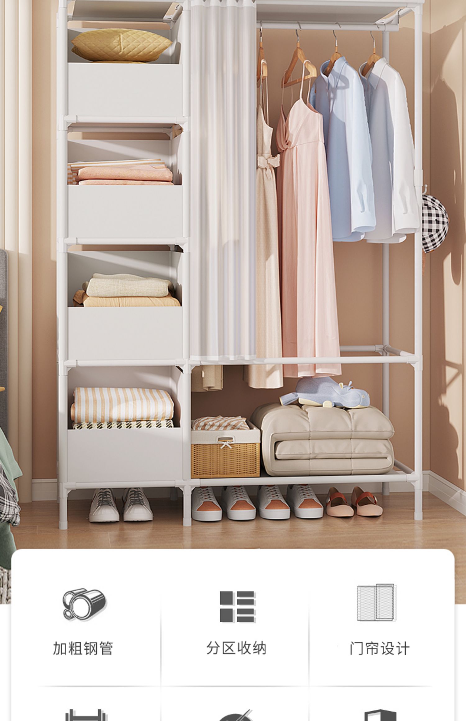 옷장 간단한 천 가정용 심플 모던 침실 방진 경제적 인 옷장 보관 다기능 옷 렌탈룸 교수형스토어 가기