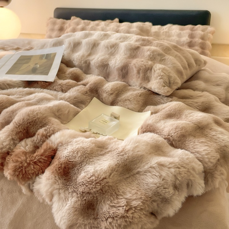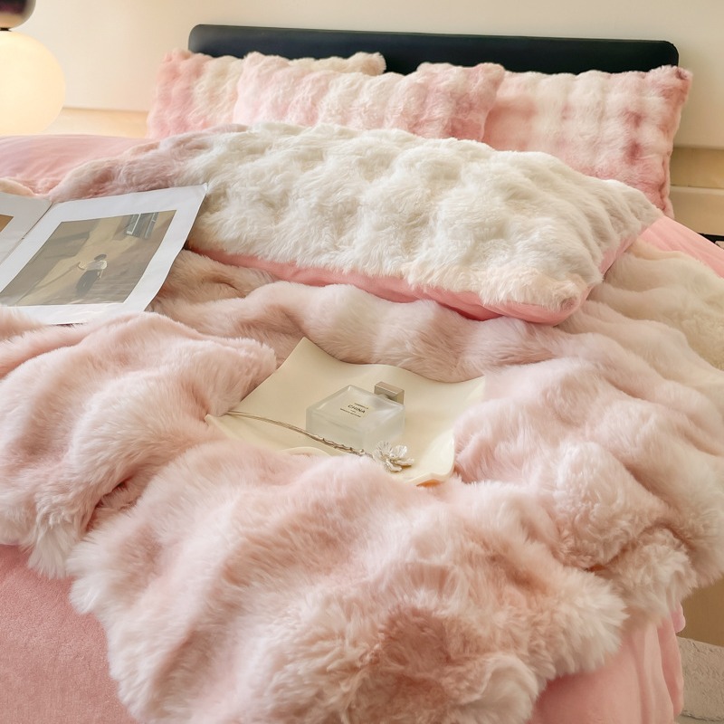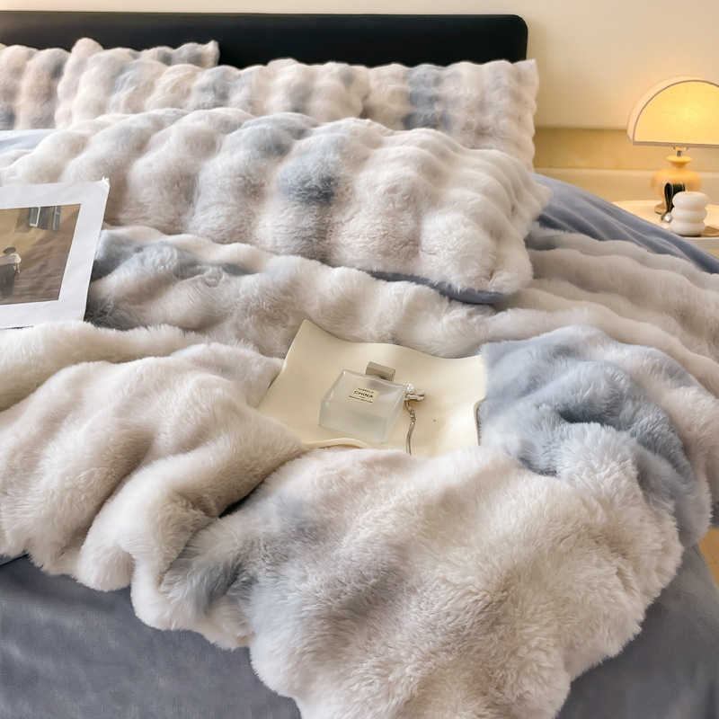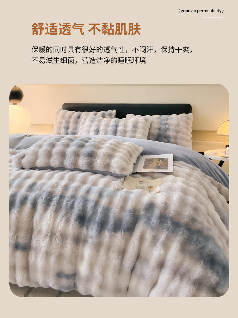 가을과 겨울 폭발 다채로운 토끼 벨벳 밀크 벨벳 4 종 세트 두꺼운 따뜻한 빛 럭셔리 고급 게으른 토끼 모피 침대 커버