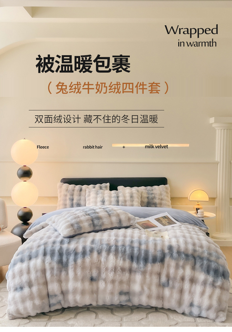가을과 겨울 폭발 다채로운 토끼 벨벳 밀크 벨벳 4 종 세트 두꺼운 따뜻한 빛 럭셔리 고급 게으른 토끼 모피 침대 커버스토어 가기