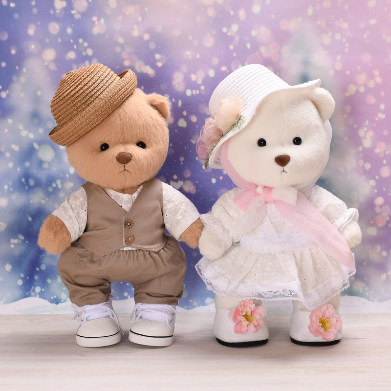 30cm 레나 곰 옷 세트 흰색 원피스 모자 커플의 인형 신사 의류 소녀 선물
