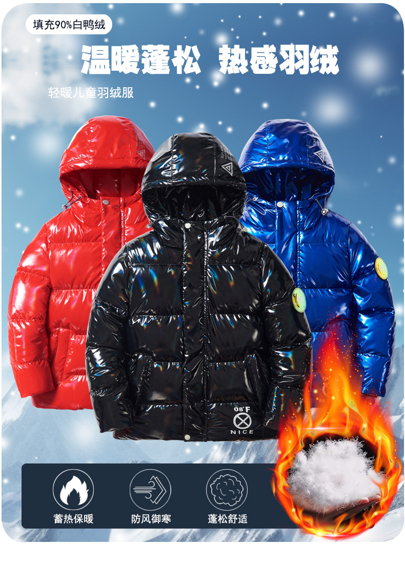 남아 다운 재킷 겨울 새로운 어린이 흰색 오리 두꺼운 따뜻한 중간 큰 어린이 웨스턴 스타일 워시 프리 후드 재킷 유행