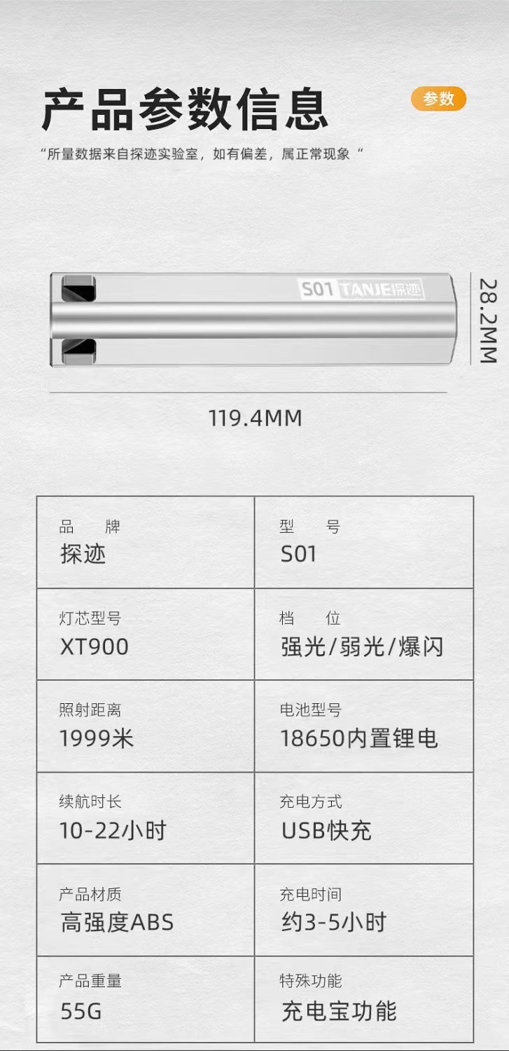 • S01 충전 보물 손전등 "컬러 박스 + 데이터 라인]