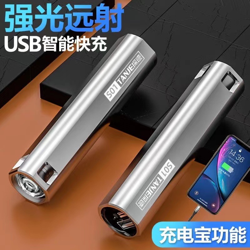 LED 충전 보물 손전등 강한 빛 충전식 자기 방어 롱 샷 슈퍼 밝은 야외 다기능 학생 가정용 방수