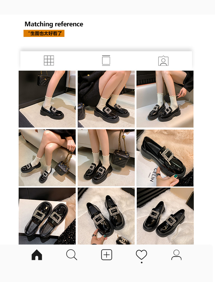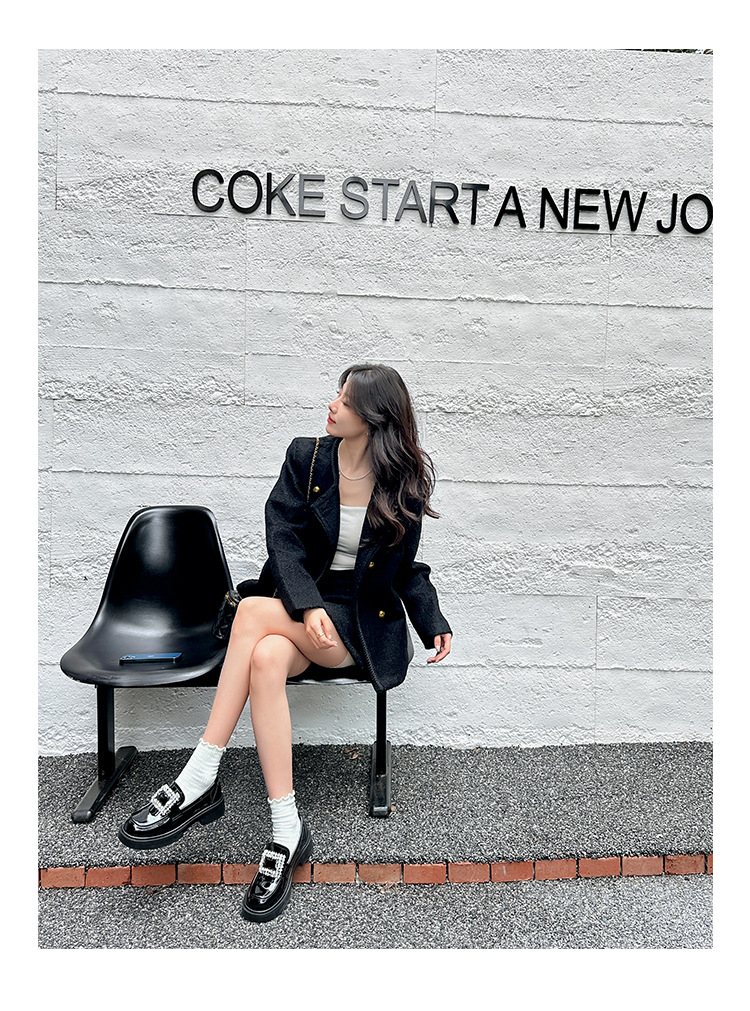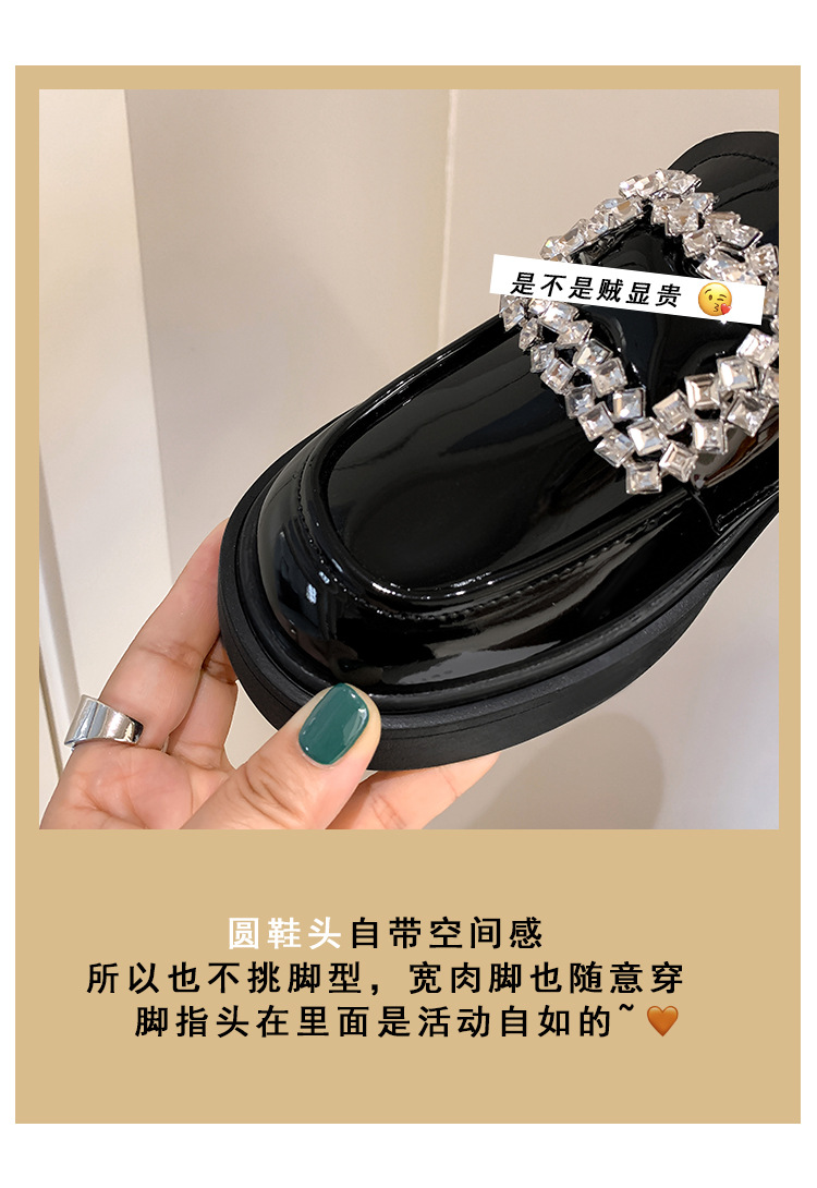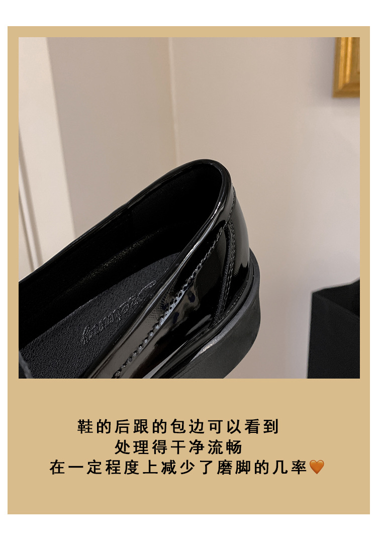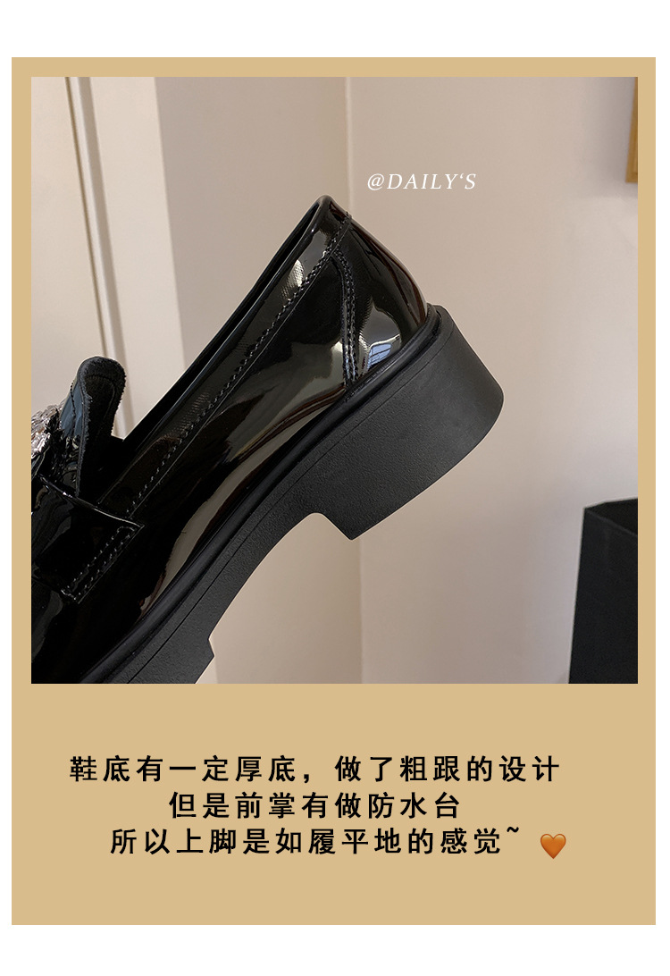 부드러운 가죽 버전 페이턴트 가죽 두꺼운 밑창 로퍼 여성용 가을과 겨울 새로운 라인 석 스퀘어 버클 라운드 토 브리티시 청키 힐 작은 가죽 신발 단층 신발스토어 가기