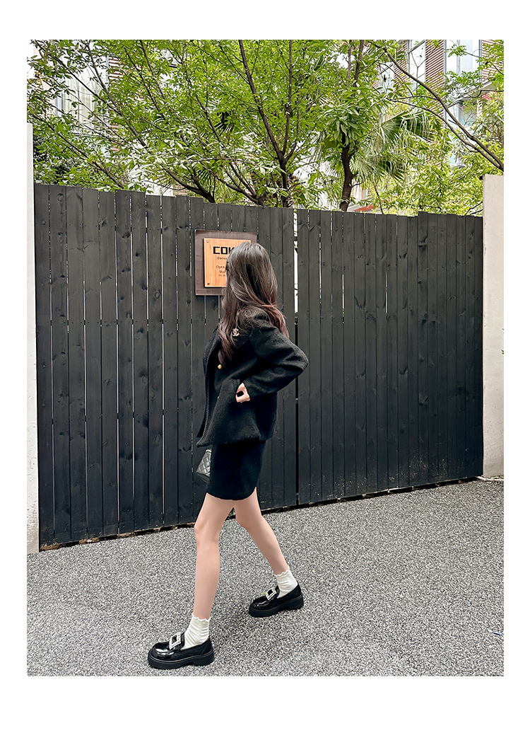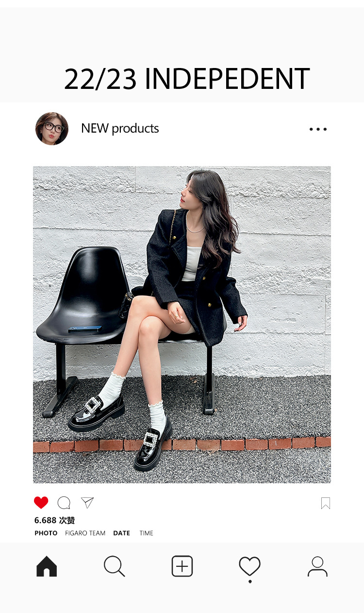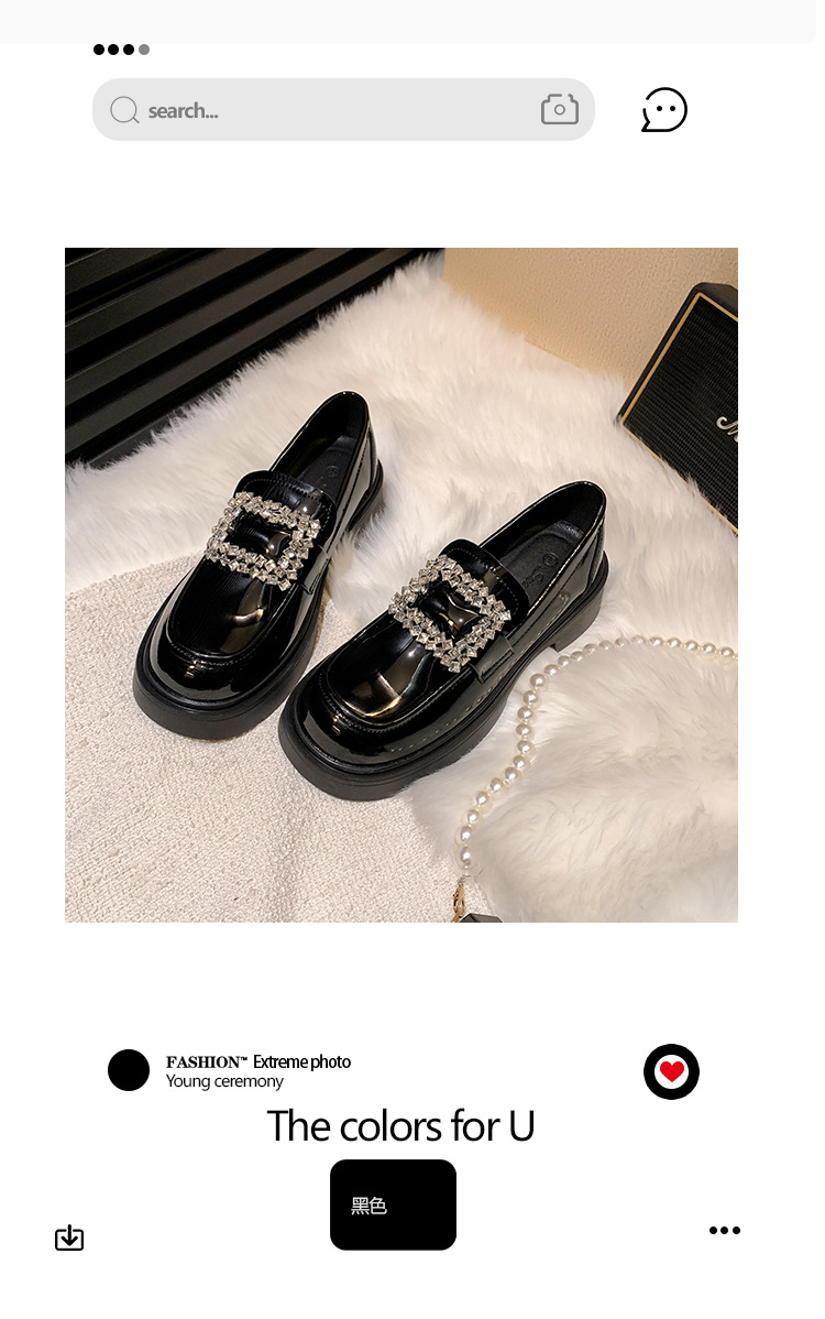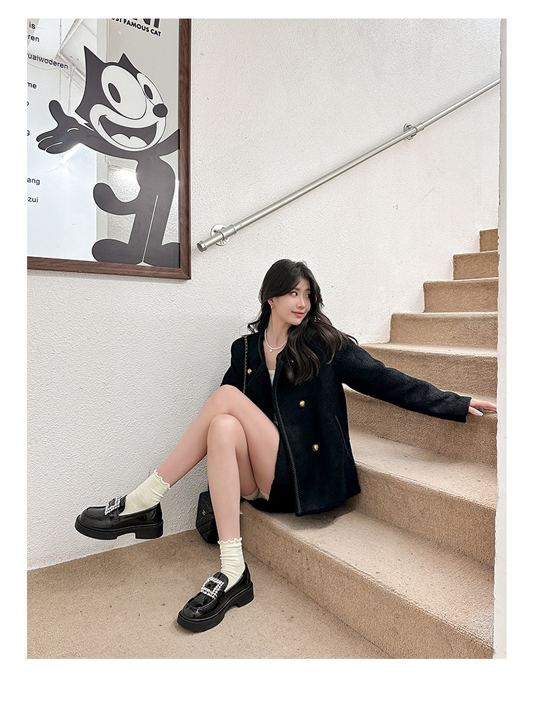 부드러운 가죽 버전 페이턴트 가죽 두꺼운 밑창 로퍼 여성용 가을과 겨울 새로운 라인 석 스퀘어 버클 라운드 토 브리티시 청키 힐 작은 가죽 신발 단층 신발스토어 가기