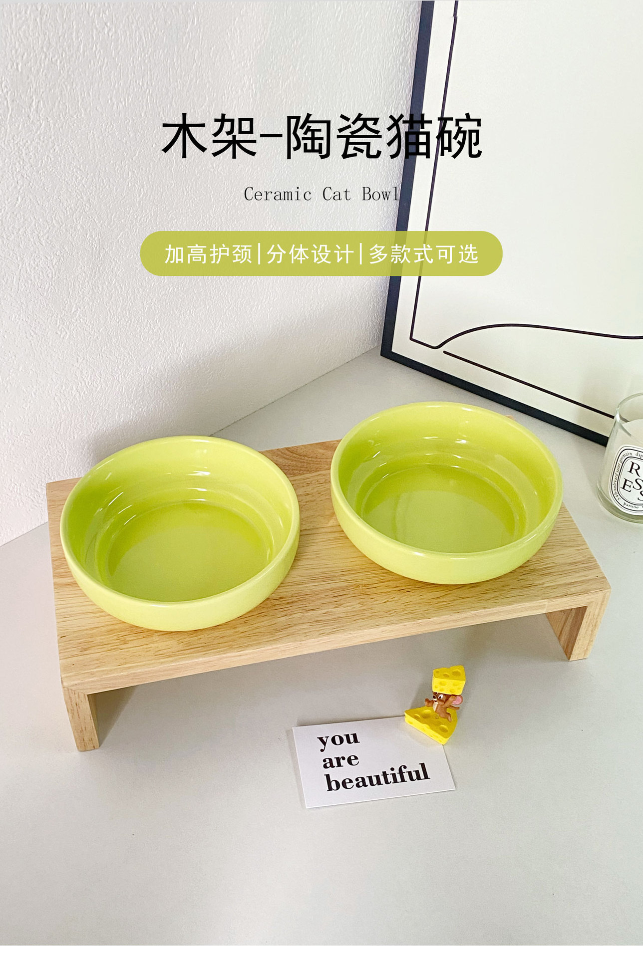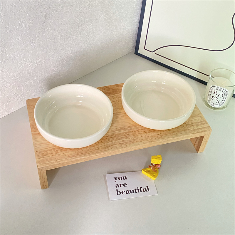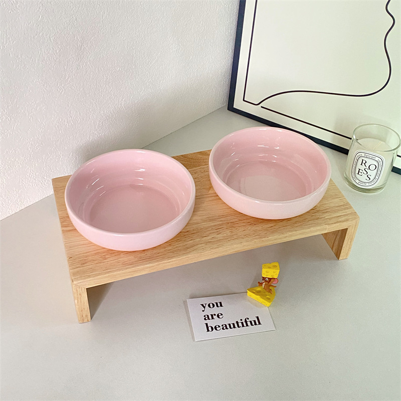 단색 고양이 그릇 안티 블랙 턱 고양이 먹이 분지 대구경 세라믹 나무 랙 개 음식 그릇 물 먹이 그릇 안티 노크 애완 동물 그릇스토어 가기