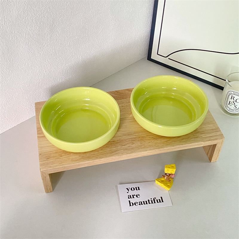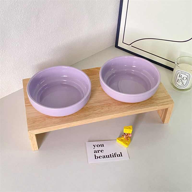 단색 고양이 그릇 안티 블랙 턱 고양이 먹이 분지 대구경 세라믹 나무 랙 개 음식 그릇 물 먹이 그릇 안티 노크 애완 동물 그릇