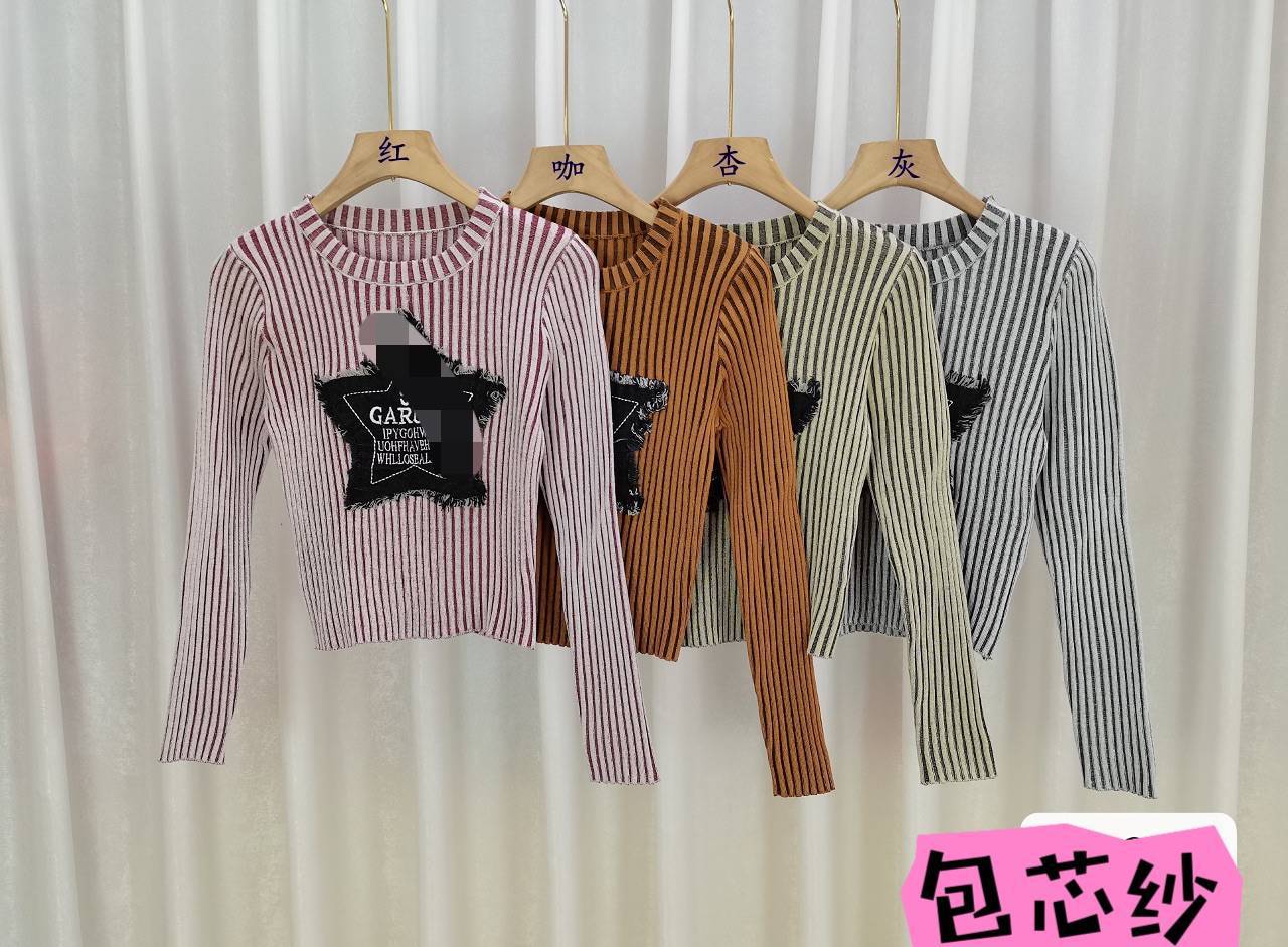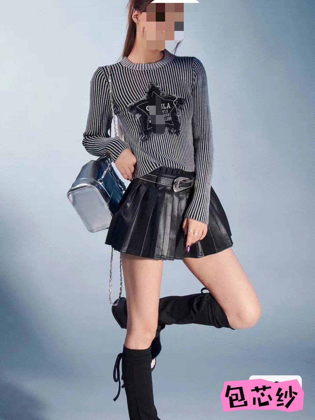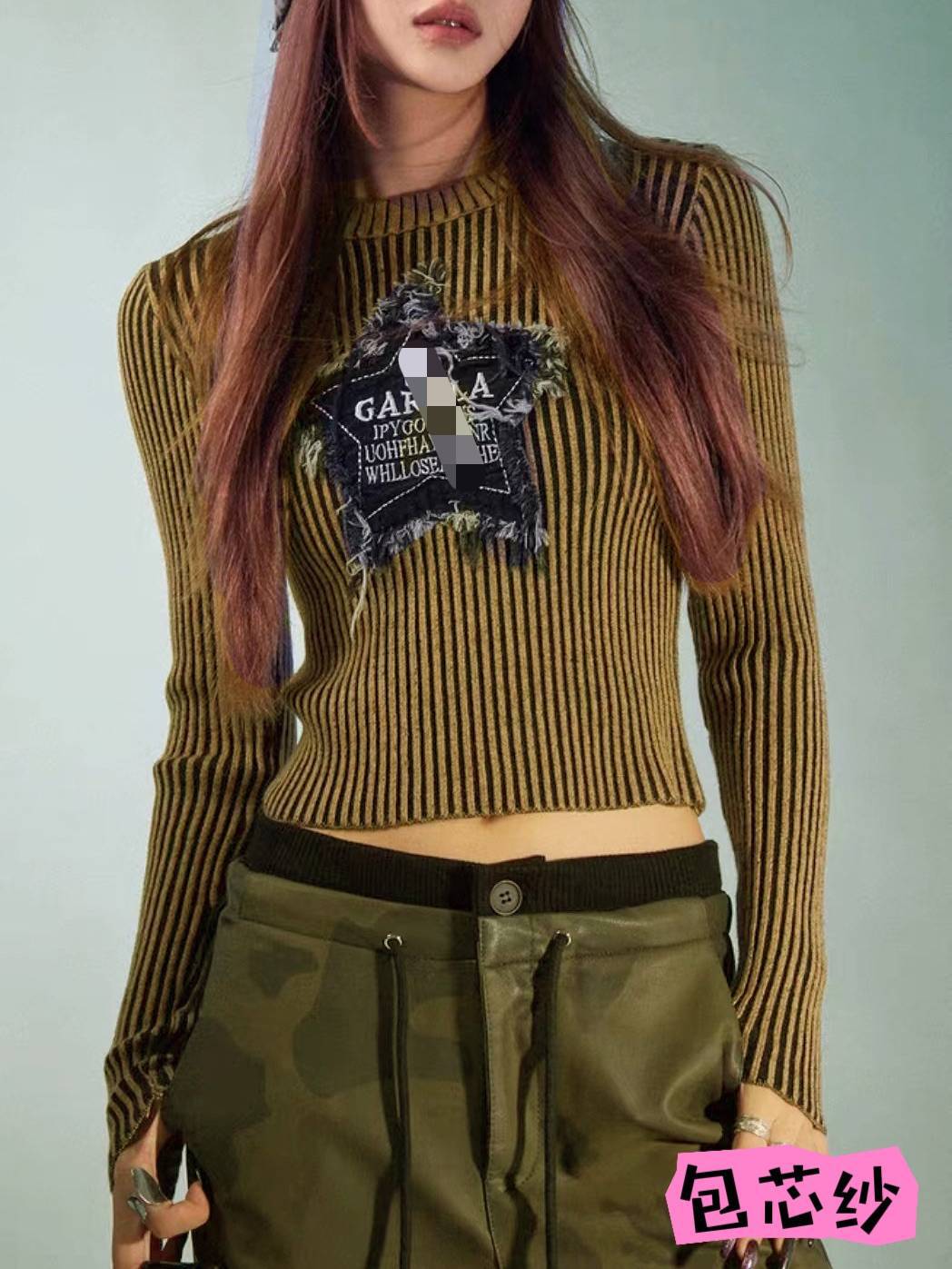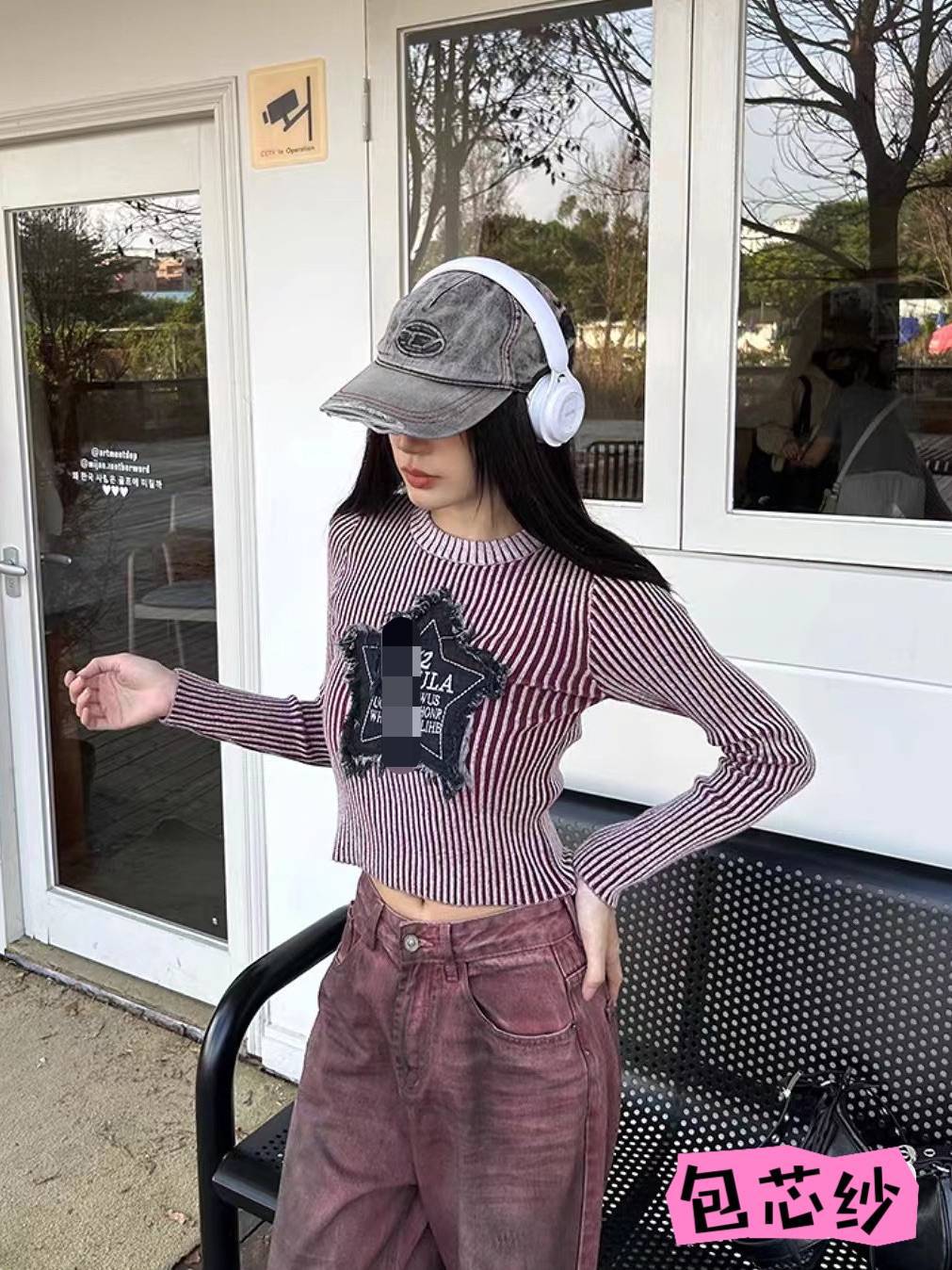 가을 2023 새로운 스파이스 걸 아메리칸 스타일 레트로 스트라이프 크루넥 스웨터 여성용 긴팔 슬림핏 베이스 얇은 스웨터스토어 가기