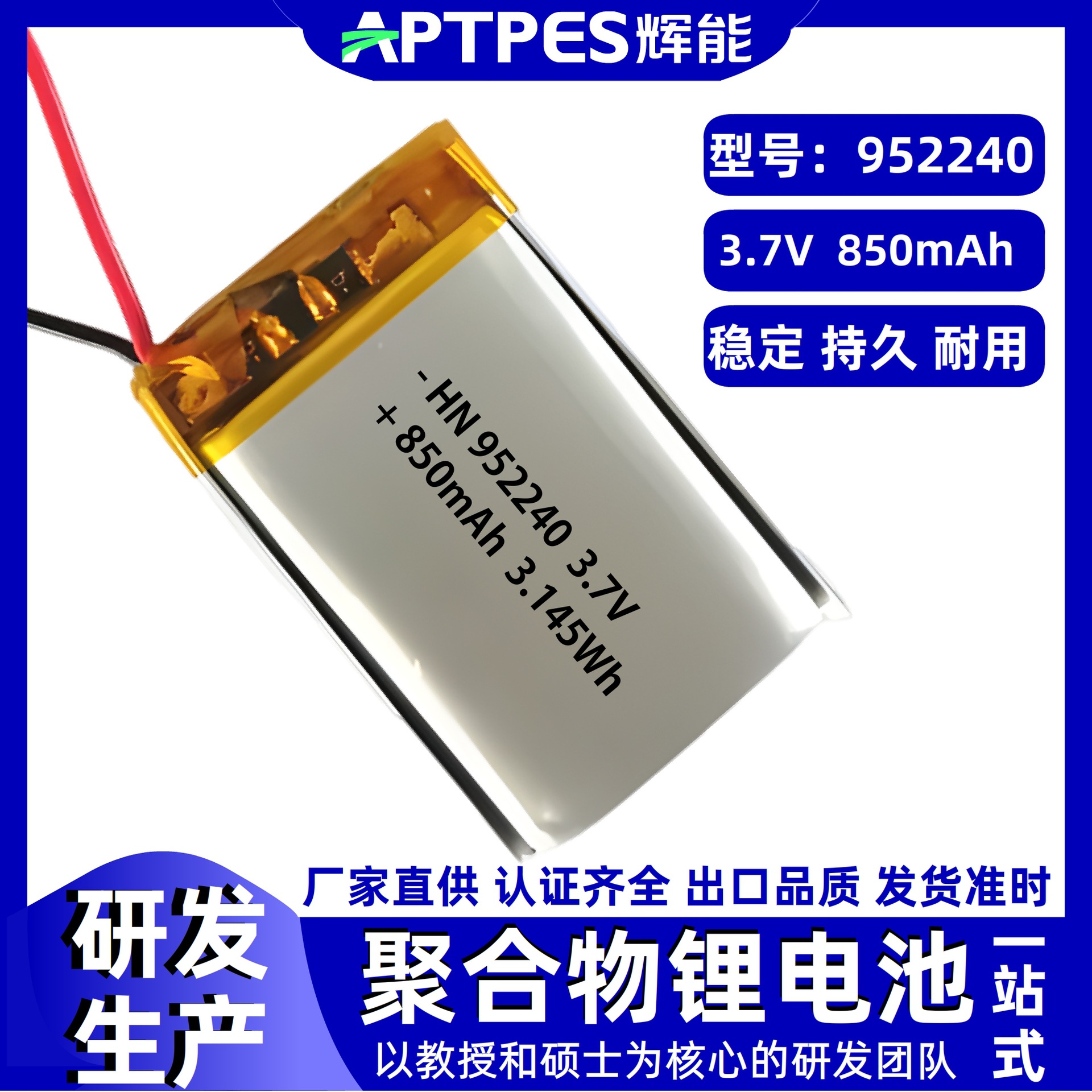 3.7V 리튬 배터리 850mAh952240 Huineng 눈과 코 마사지 기기 폴리머 리튬 배터리 팩 소프트 백 제조 업체스토어 가기