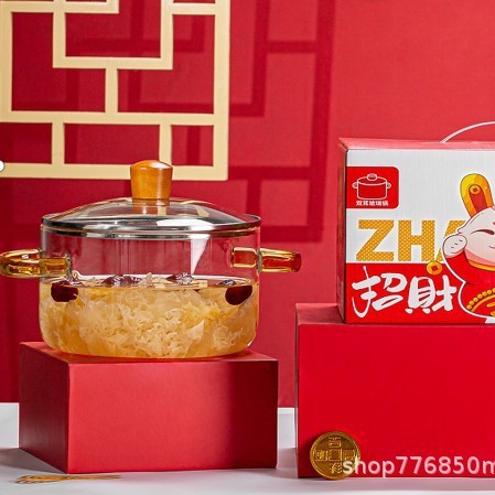 Jia Jia 선물 행운의 냄비 3.2 리터 오픈 파이어 직접 불타는 붕규산 유리 수프 냄비 수프 냄비 선물 도매스토어 가기