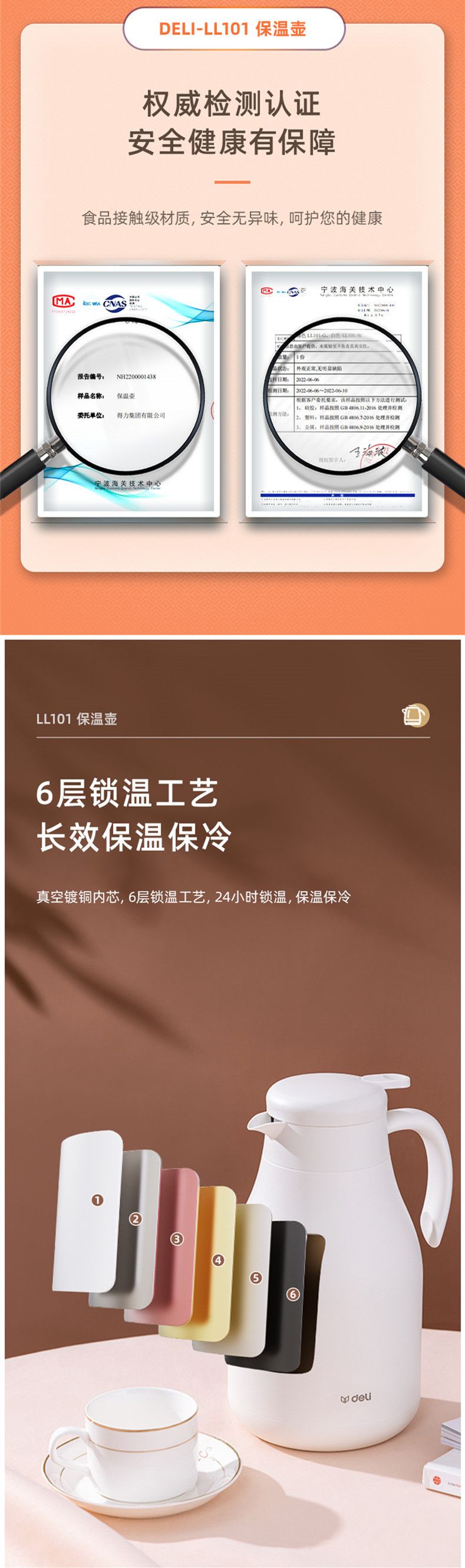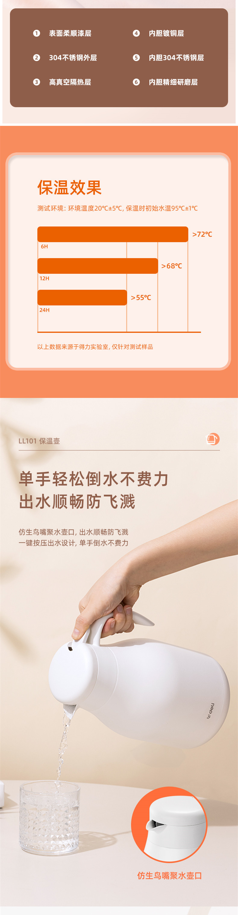 델리 LL101-G 단열 냄비 304 스테인레스 스틸 진공 단열 차가운 냄비 여행 사무실 가정용 단열 냄비