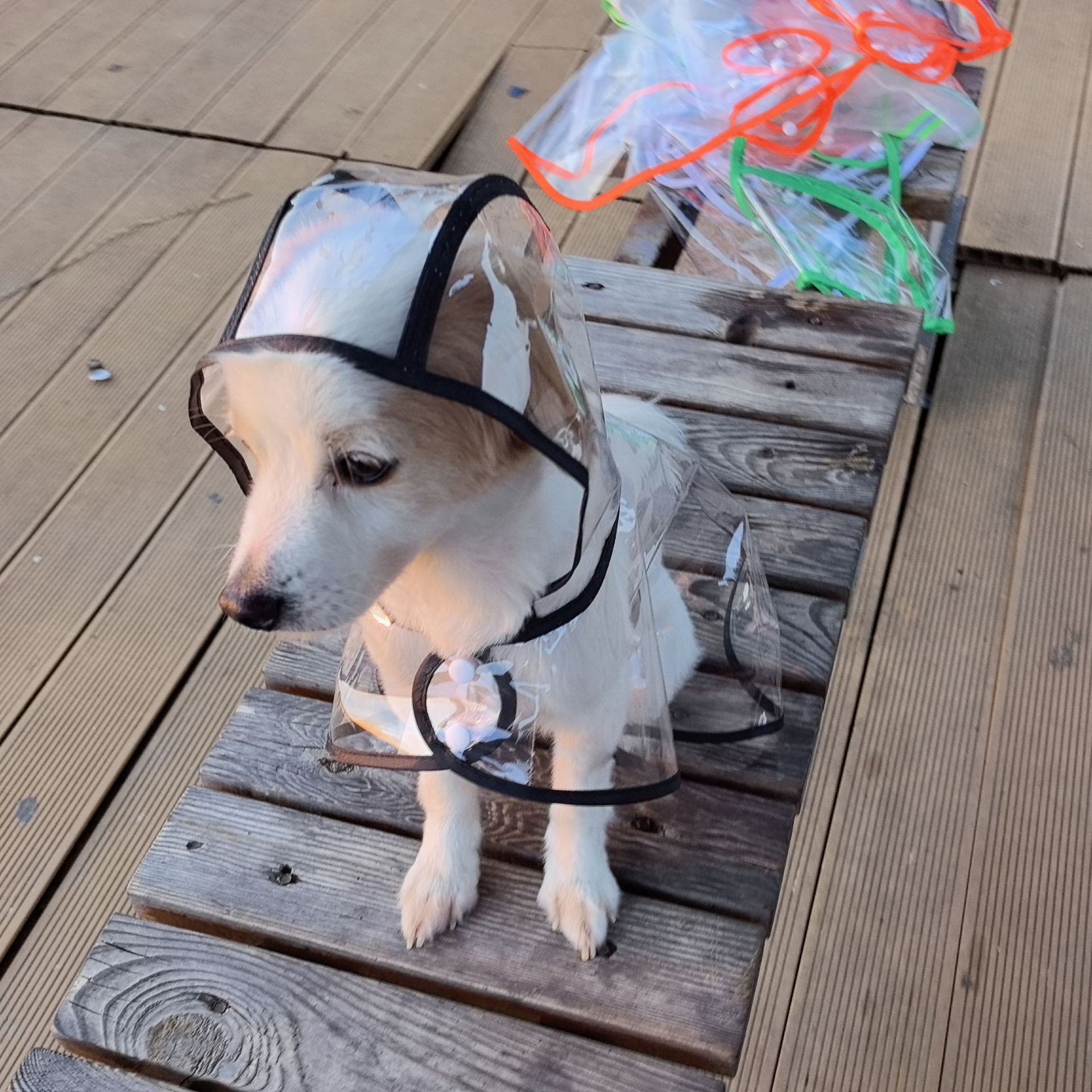 강아지 방수 우비 검은색 가장자리 비옷 애완동물 착용 편리 시야 가리지 않음 강아지 편리 착용 우비스토어 가기