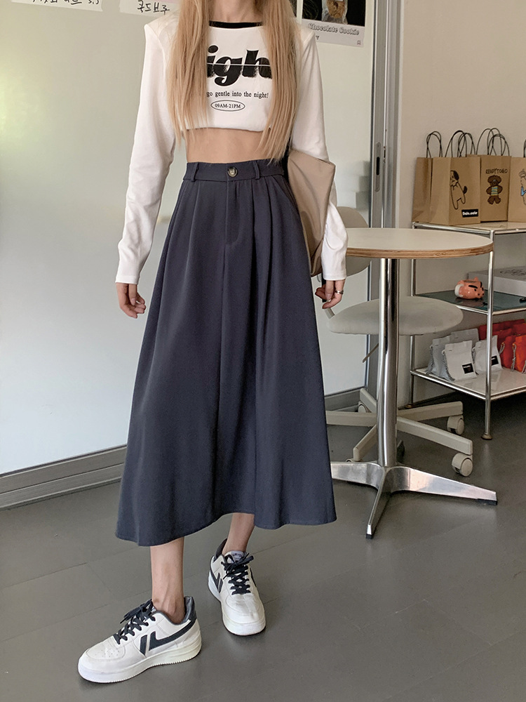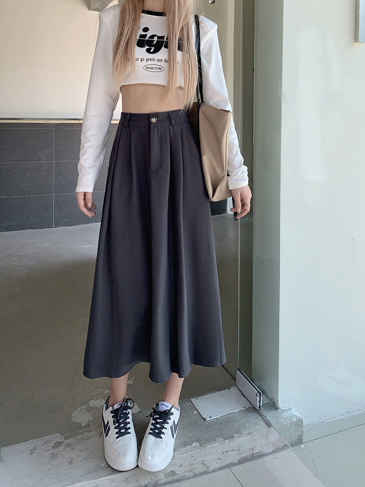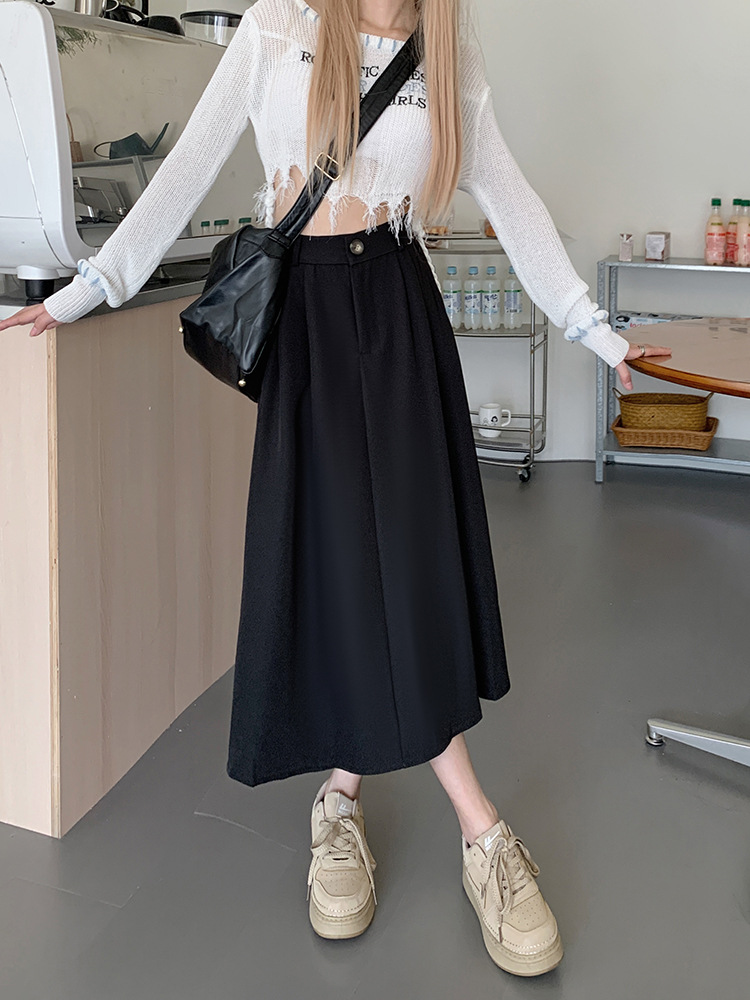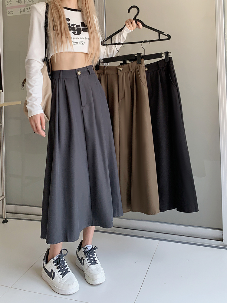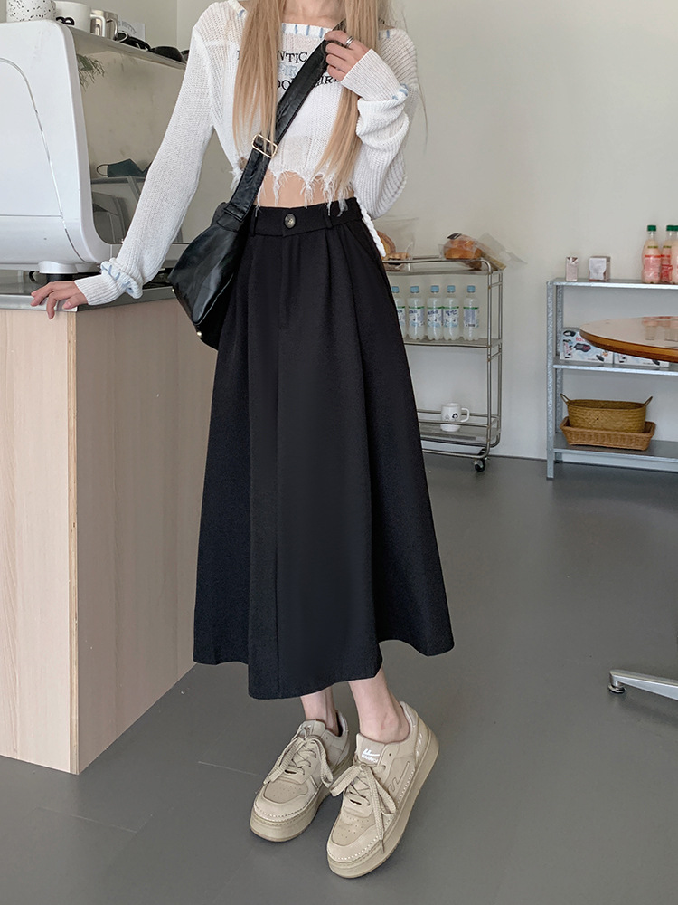 블랙 스커트 신축성있는 허리 슬리밍 조커 핫 걸 미드 길이 A 라인 스커트 도매 여성 가을 새 한국어 버전