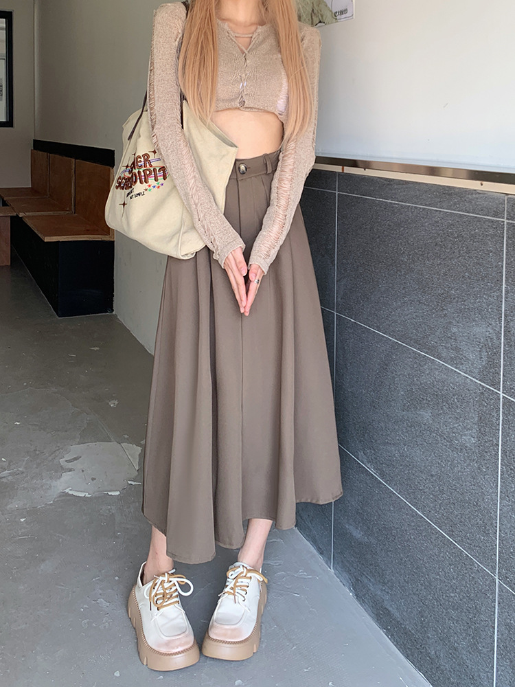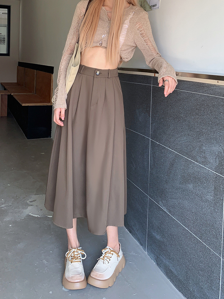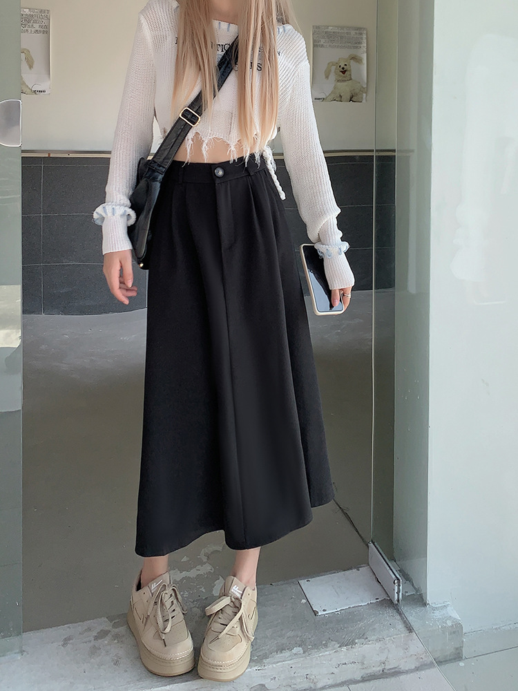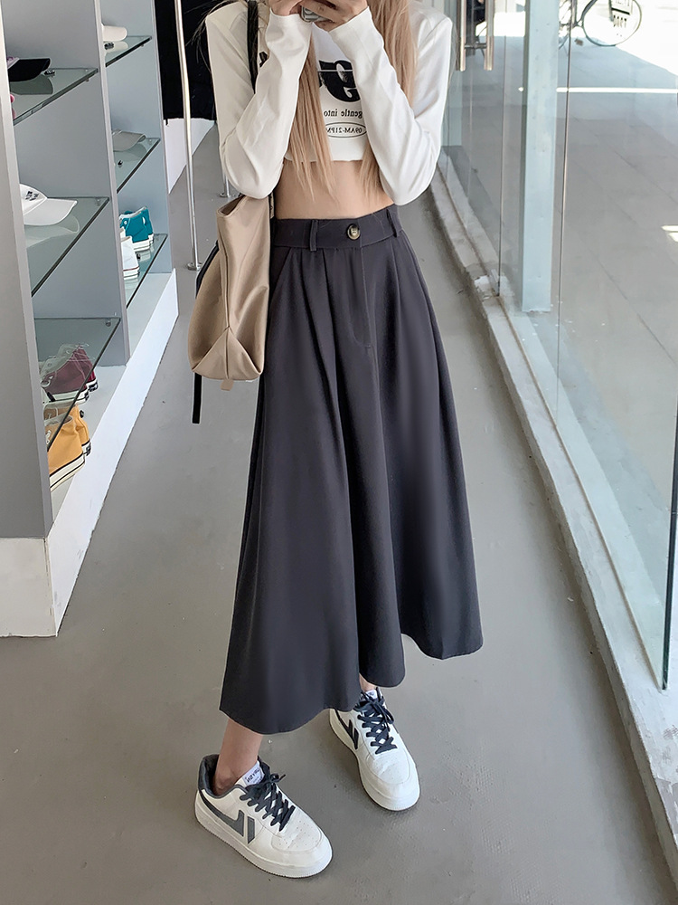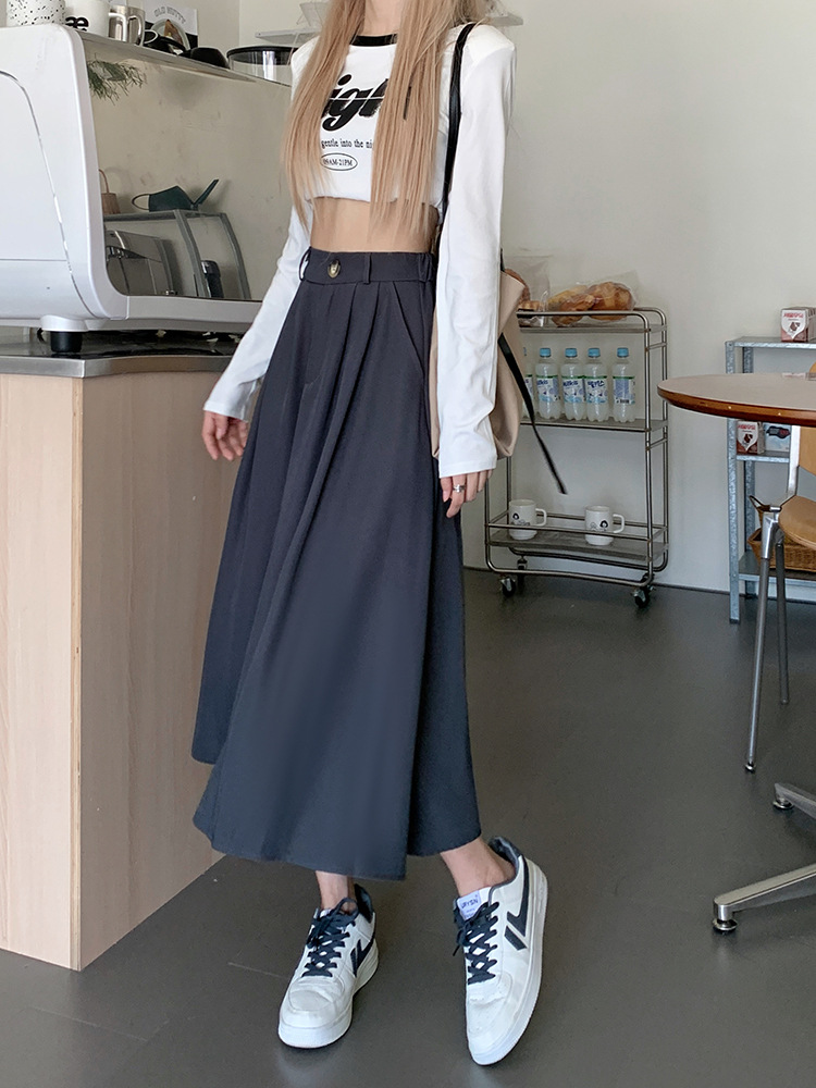 블랙 스커트 신축성있는 허리 슬리밍 조커 핫 걸 미드 길이 A 라인 스커트 도매 여성 가을 새 한국어 버전