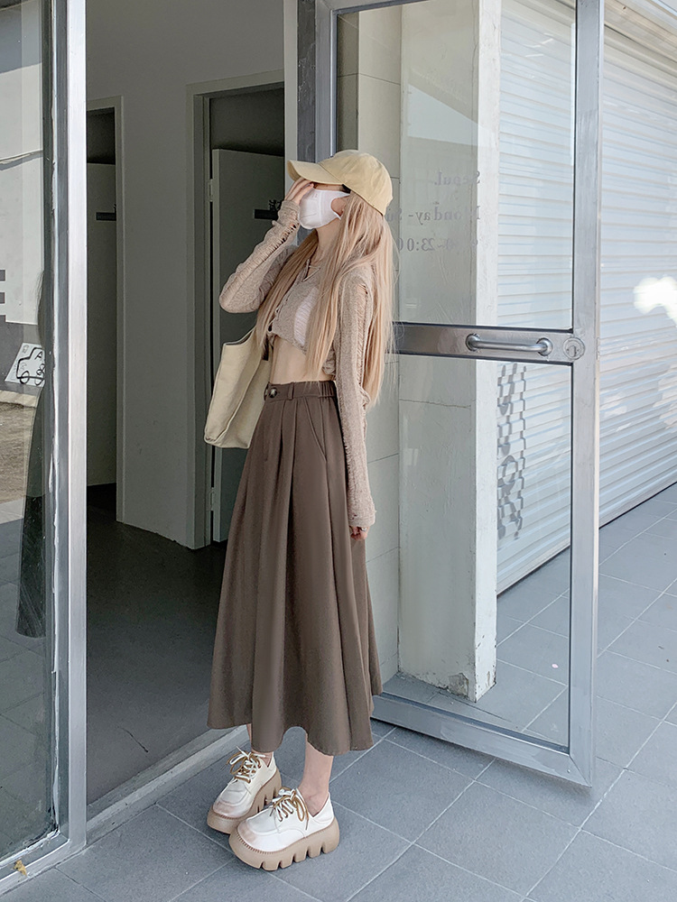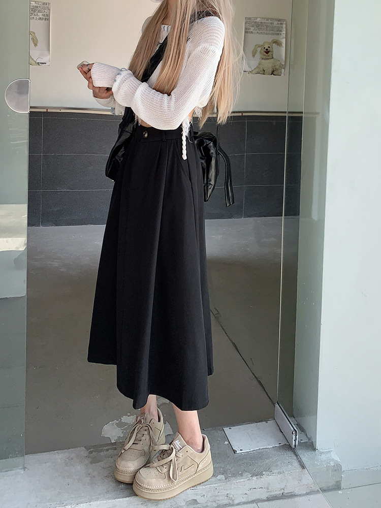 블랙 스커트 신축성있는 허리 슬리밍 조커 핫 걸 미드 길이 A 라인 스커트 도매 여성 가을 새 한국어 버전스토어 가기