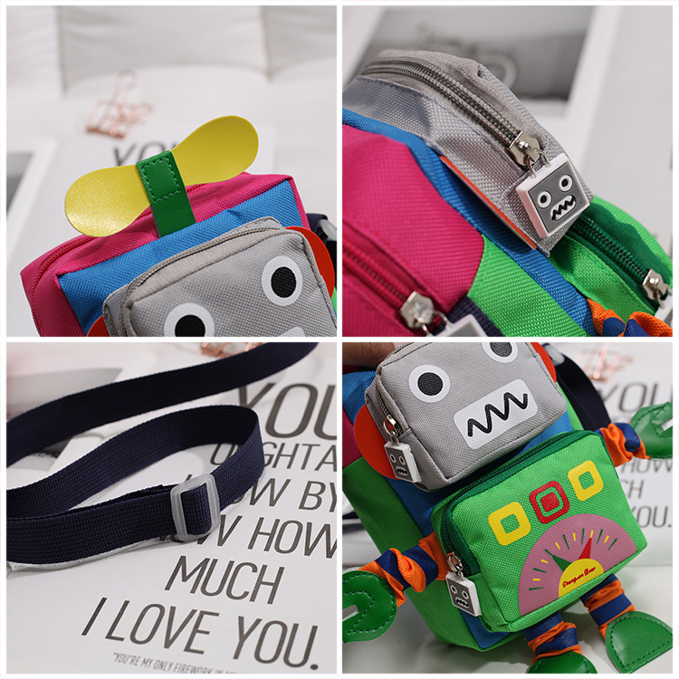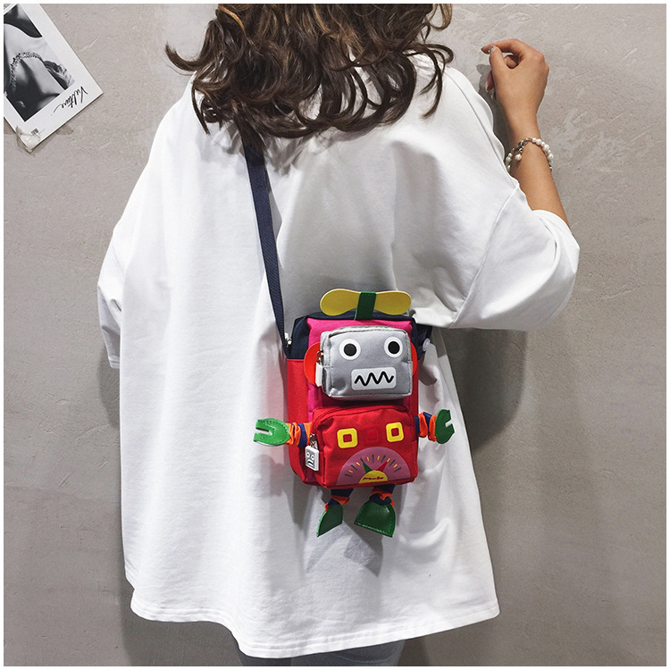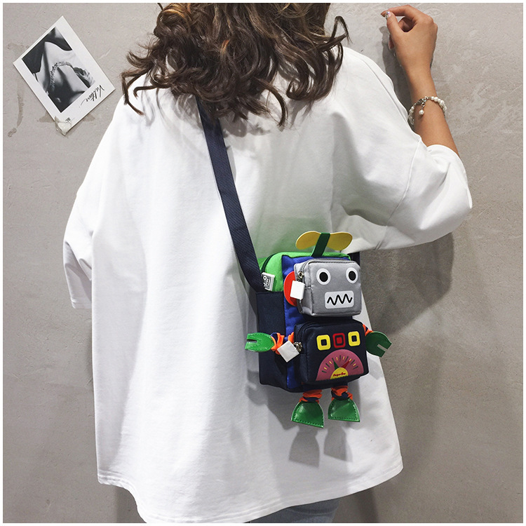 Ins 만화 작은 가방 소년과 소녀 귀여운 인형 크로스 바디 유행 가방 한국 스타일 외국 스타일 재미 있은 로봇 어깨 가방