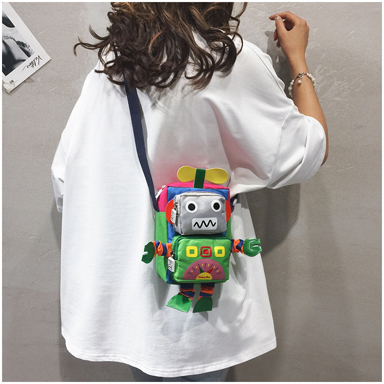 Ins 만화 작은 가방 소년과 소녀 귀여운 인형 크로스 바디 유행 가방 한국 스타일 외국 스타일 재미 있은 로봇 어깨 가방스토어 가기