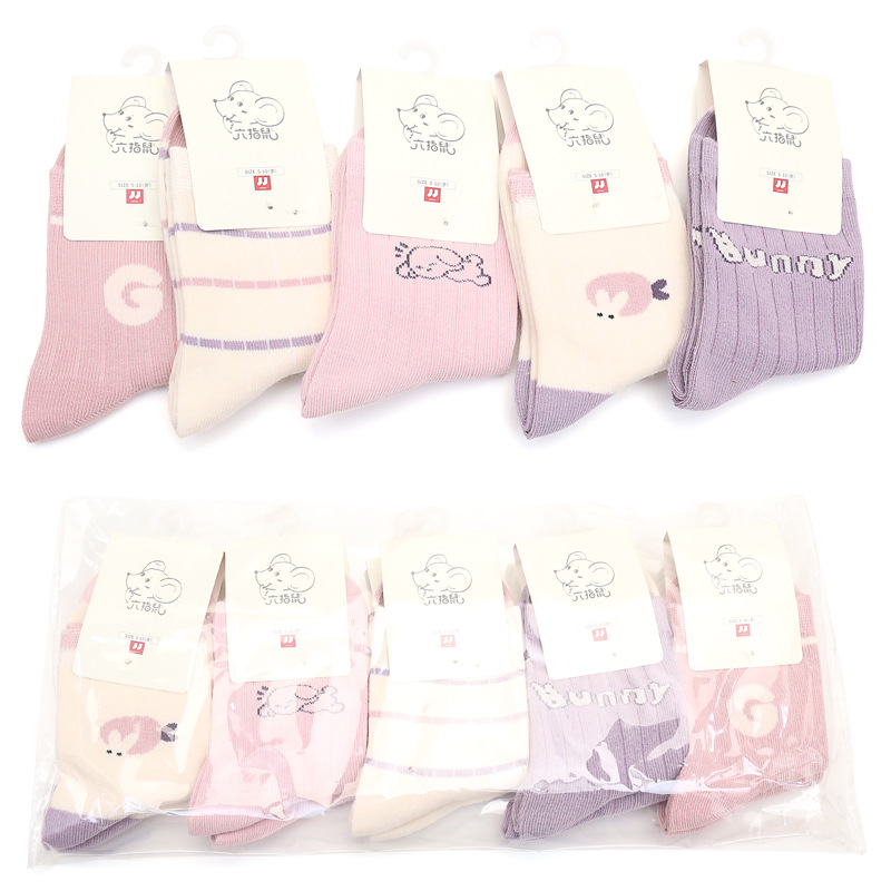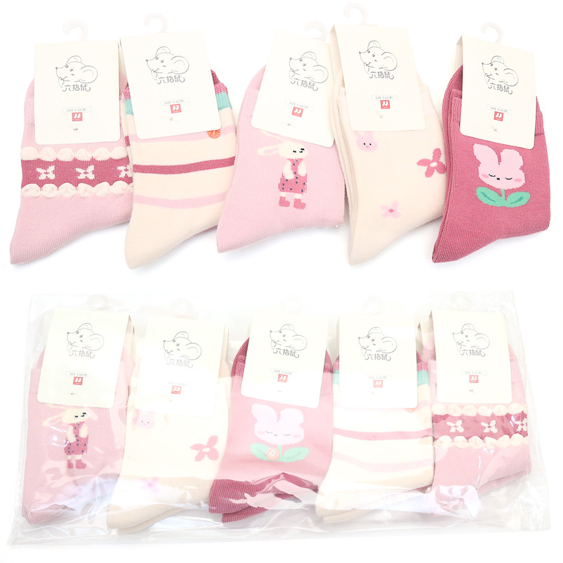 여섯 손가락 마우스 어린이 양말 가을과 겨울 따뜻한 빗질 면 두꺼운 딸기 핑크 부드러운 중간 튜브 소녀 만화 토끼 Dabao 양말스토어 가기