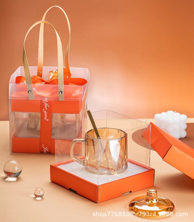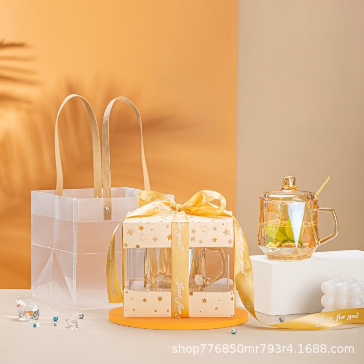 Jia Jia 선물 dubaite 선물 상자 포장은 먼저 손잡이가 달린 마음을 좋아하는 유리를 보았습니다 컵 오로라 물 컵 숟가락스토어 가기