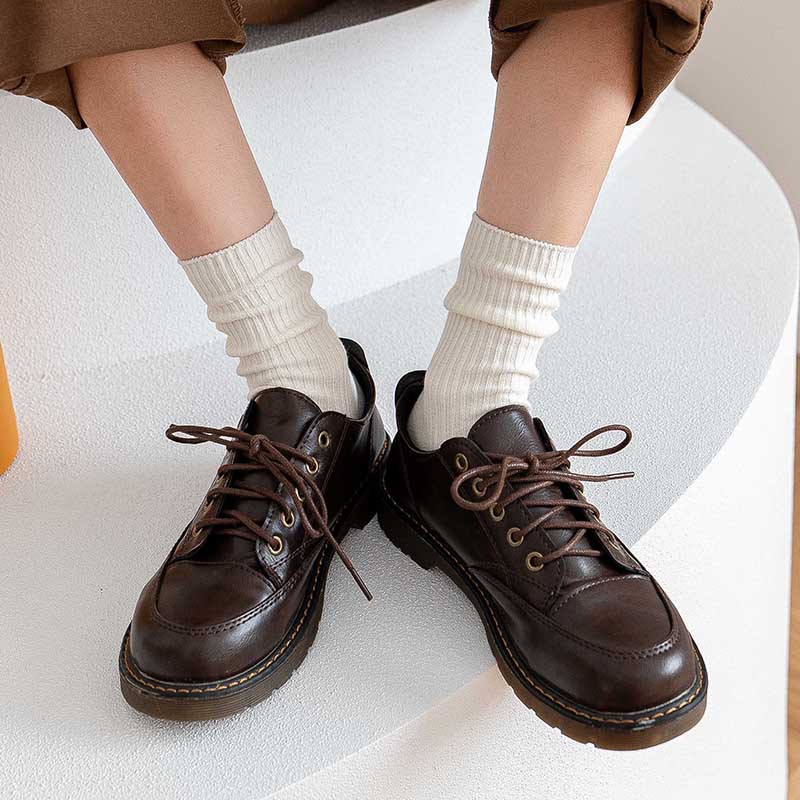 2023 가을과 겨울 양말 어린이 복고풍 단색 더미 양말 학업 스타일 이중 바늘 다크 브라운 미드 튜브 면화 양말스토어 가기