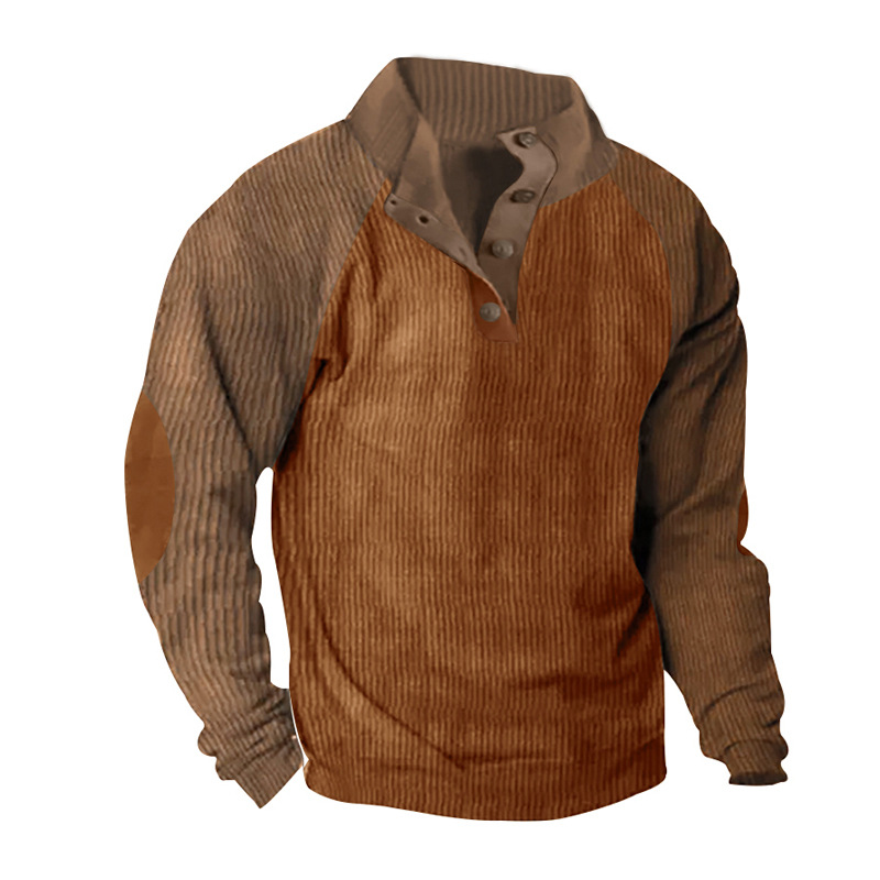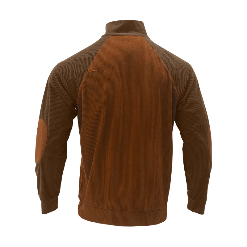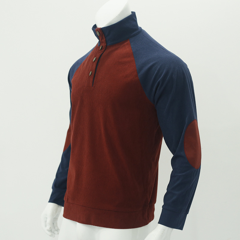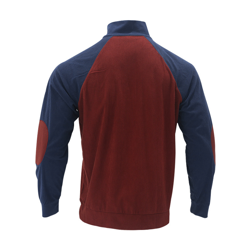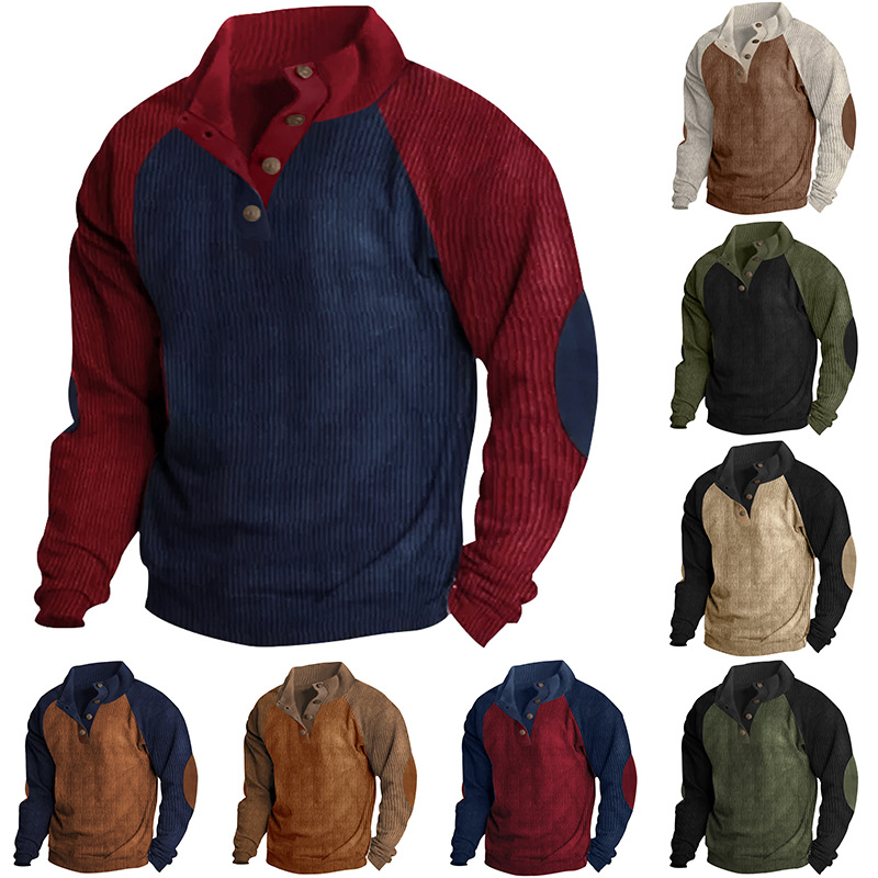 2023 가을과 겨울 크로스 보더 유럽 사이즈 남성 야외 라글란 슬리브 캐주얼 스탠드 칼라 느슨한 코듀로이 컬러 매칭 스포츠 스웨터