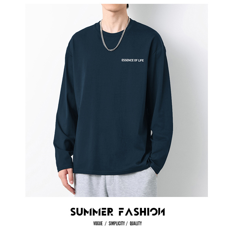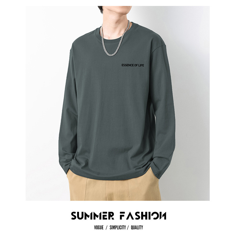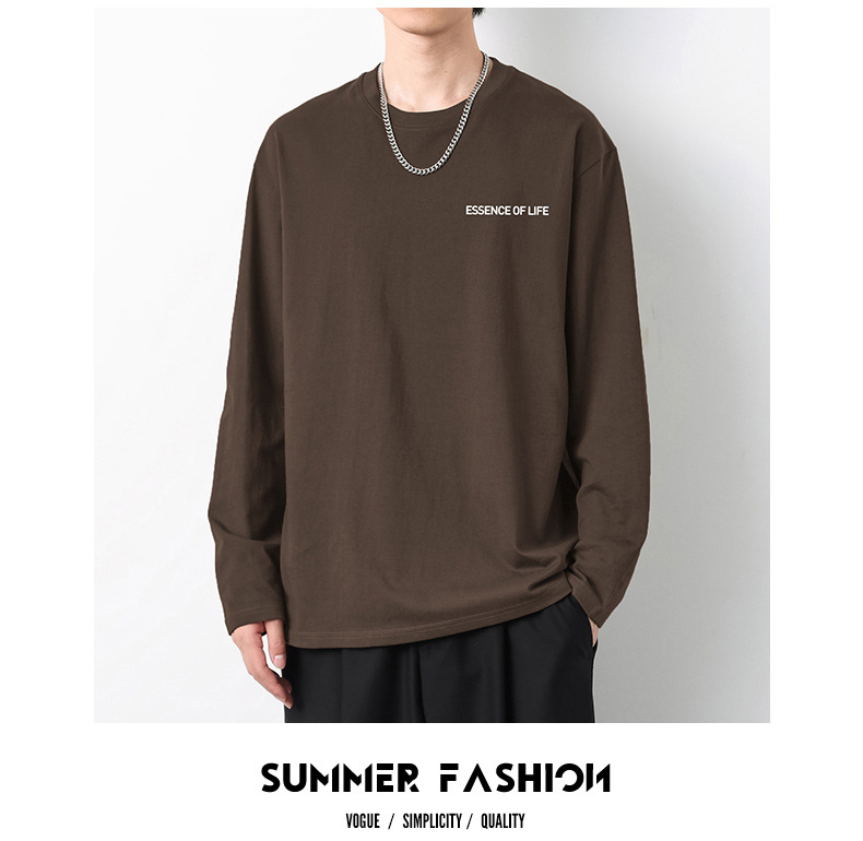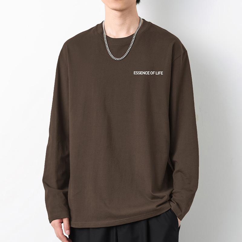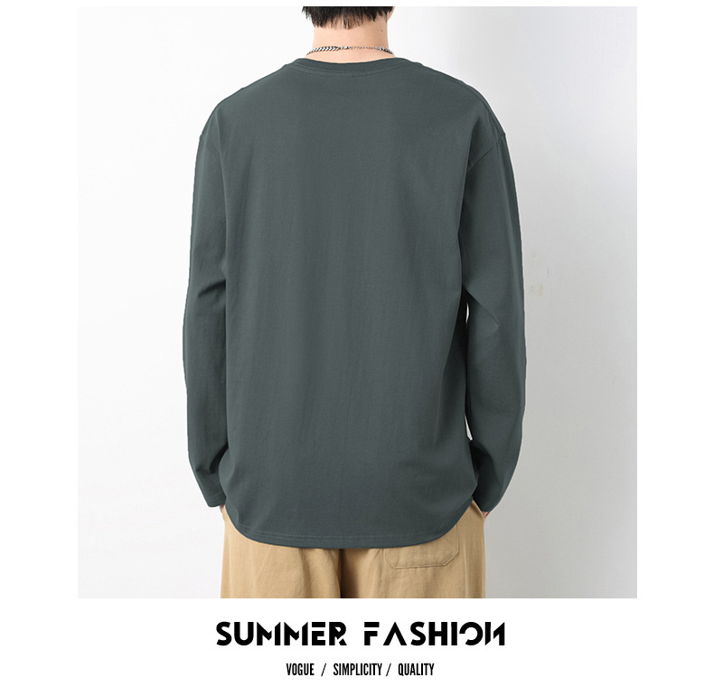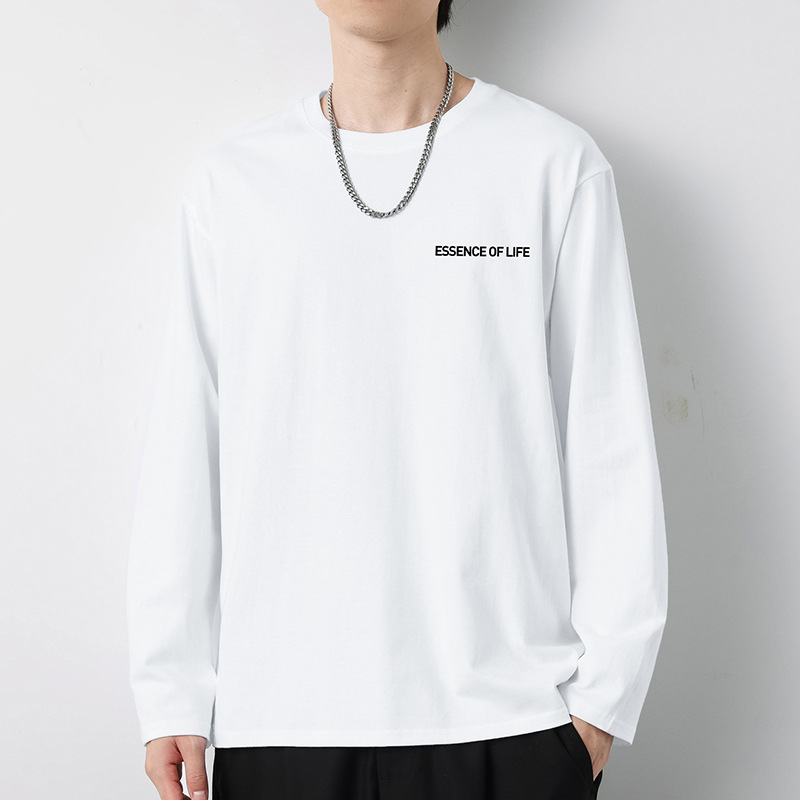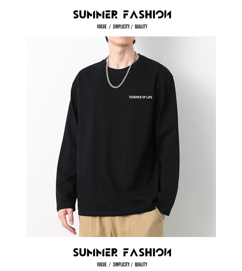 260g 헤비 코튼 티셔츠 남성용 긴팔 아메리칸 오버사이즈 이너베이스 셔츠 알파벳 인쇄 가을 셔츠