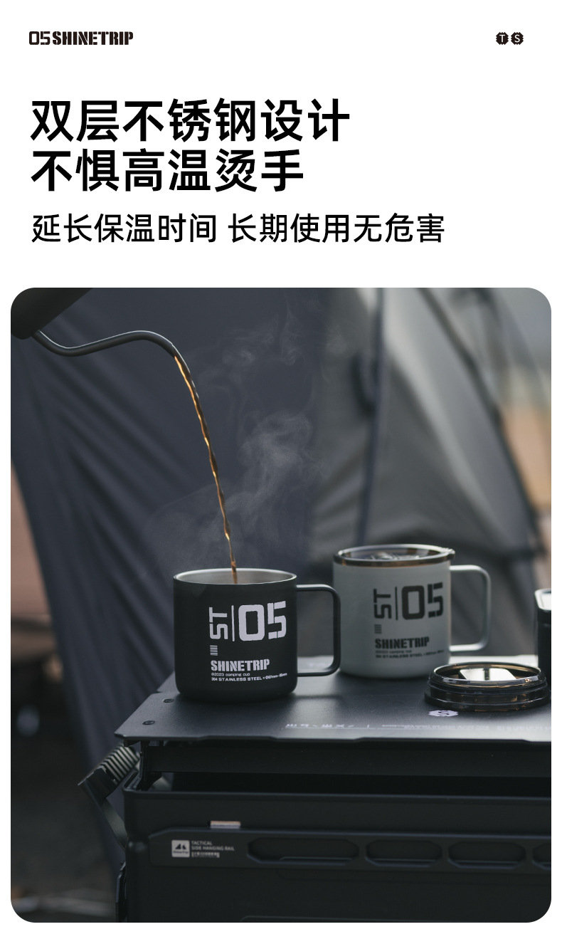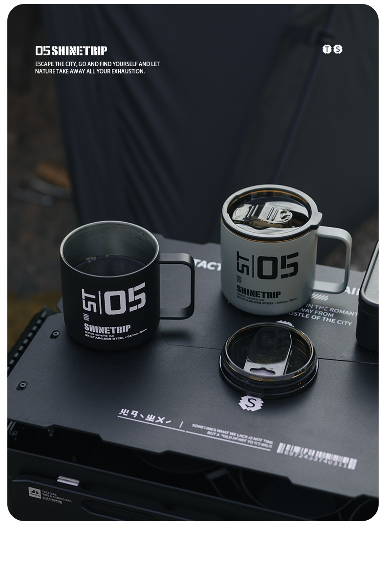 Shanqu 야외 304 스테인레스 스틸 워터 컵 전술 절연 차 커피 컵 휴대용 캠핑 절연 마시는 컵스토어 가기