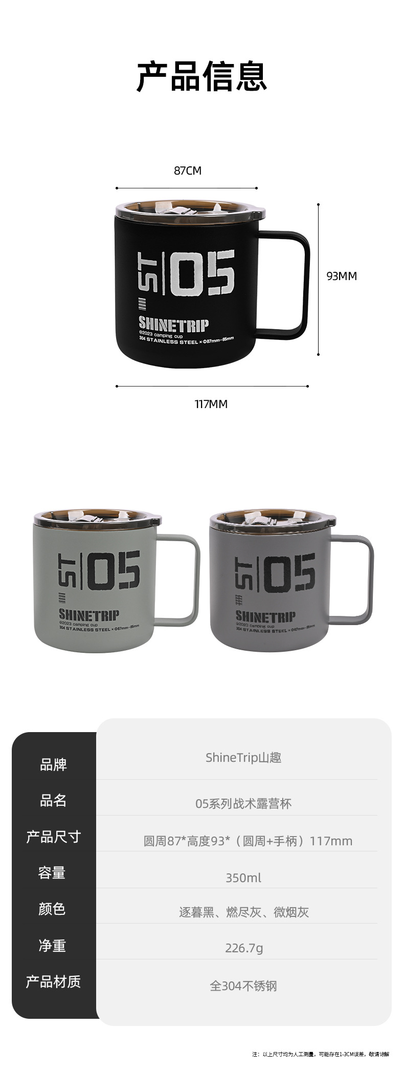 Shanqu 야외 304 스테인레스 스틸 워터 컵 전술 절연 차 커피 컵 휴대용 캠핑 절연 마시는 컵