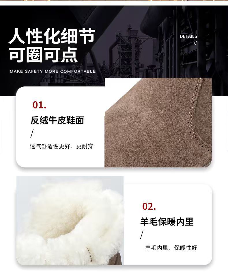 • 브라운 기모 안감 [높은 굽 면화] [화상 방지 + 보온 양모 + 낙하/관통 방지] ; 42