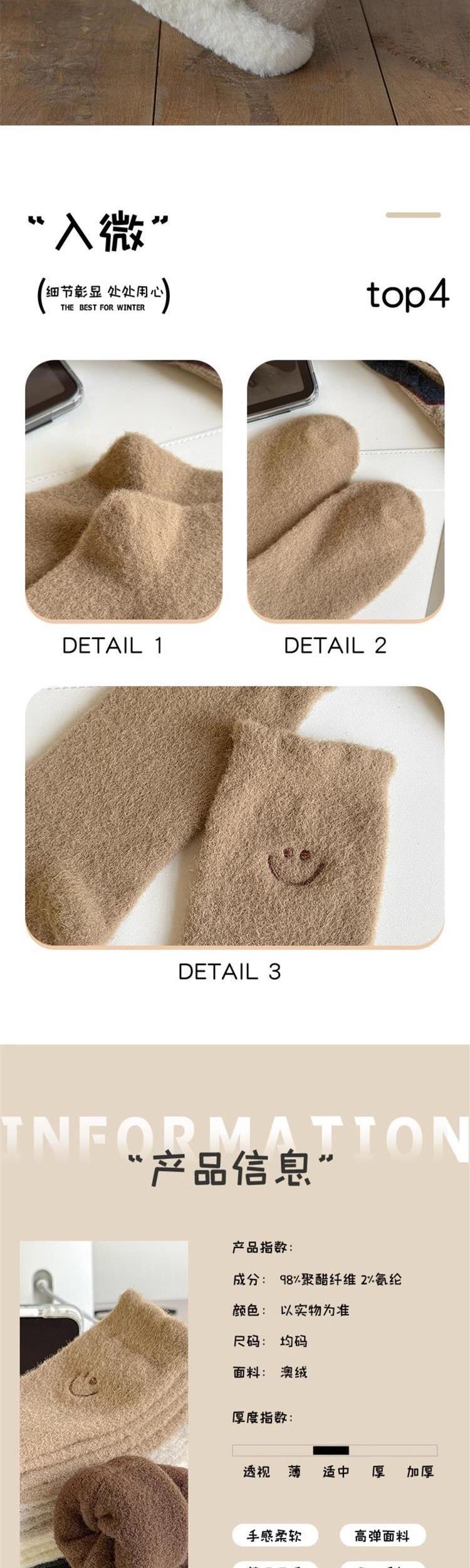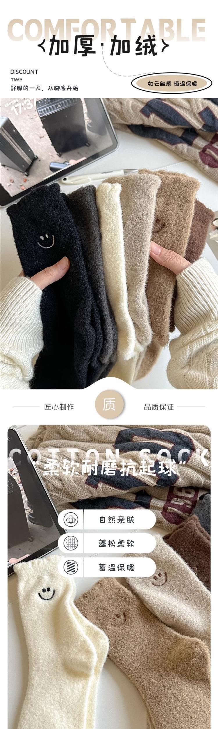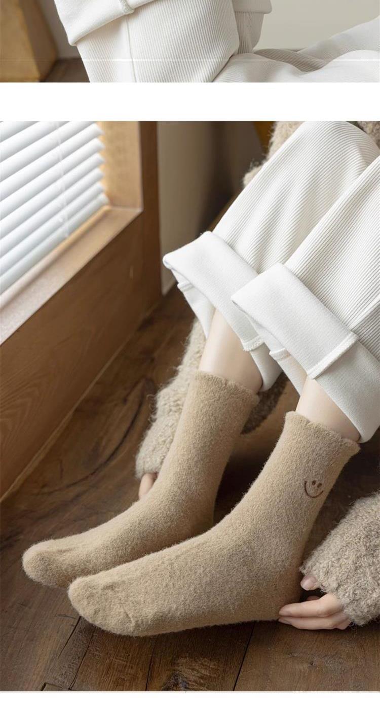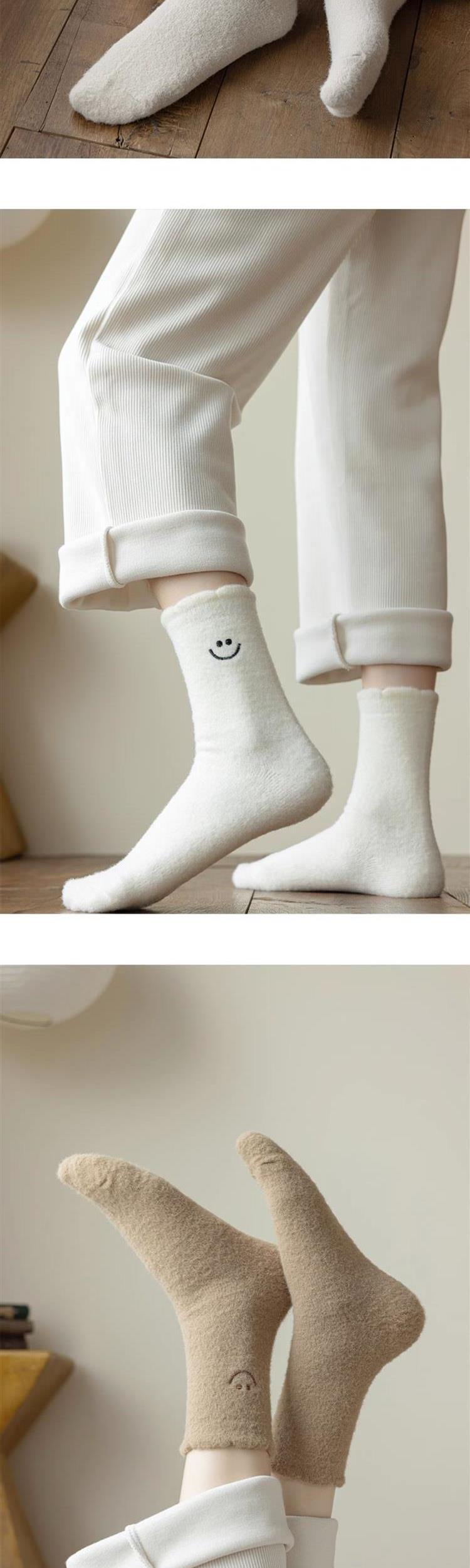 HONEYCOLOR 양말 여성용 중간 튜브 양말 가을과 겨울 기모 두꺼운 따뜻한 호주 벨벳 겨울 산후 달 양말
