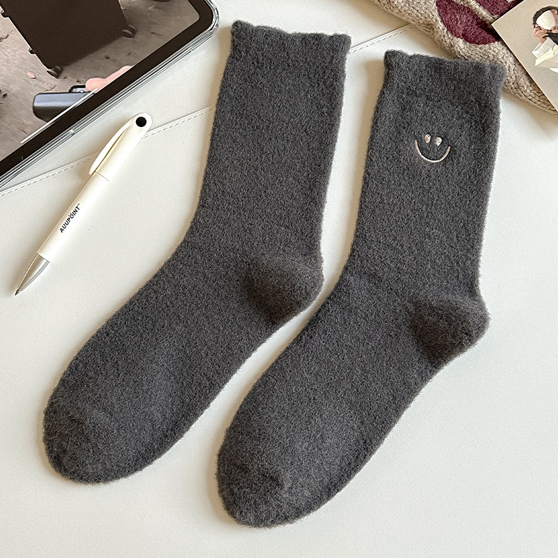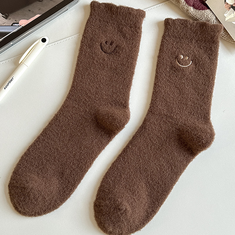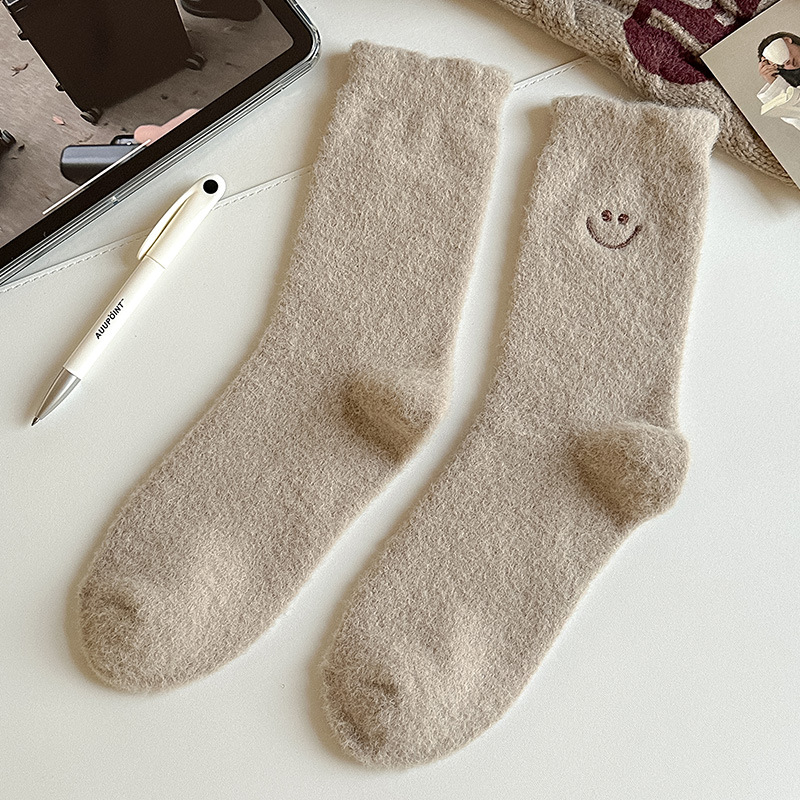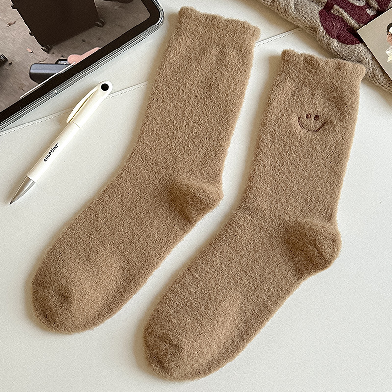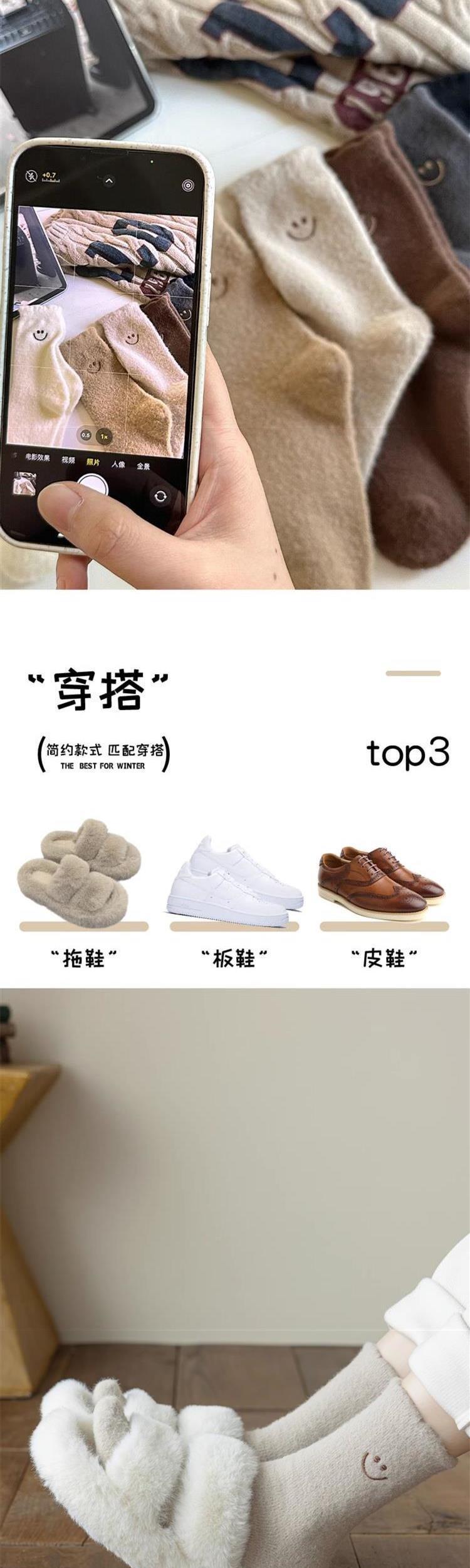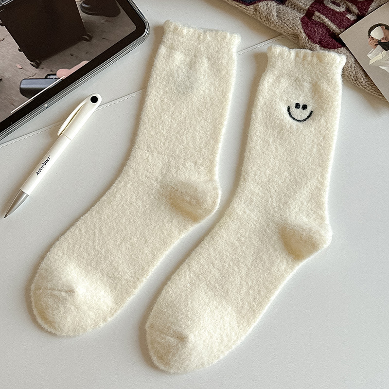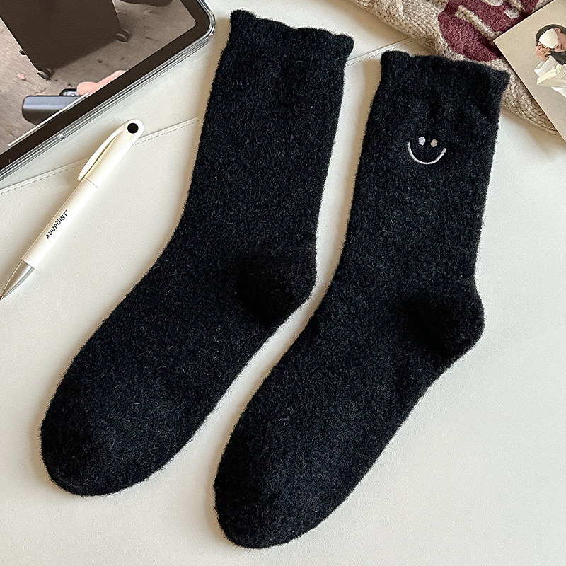 HONEYCOLOR 양말 여성용 중간 튜브 양말 가을과 겨울 기모 두꺼운 따뜻한 호주 벨벳 겨울 산후 달 양말