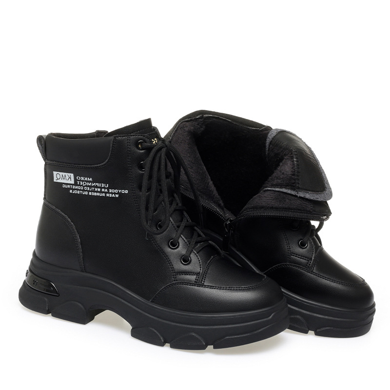 두꺼운 밑창 마틴 부츠 여성의 가을과 겨울 2023 새로운 부드러운 가죽 짧은 부츠 영국 스타일 여성 부츠 기모 가죽 신발스토어 가기