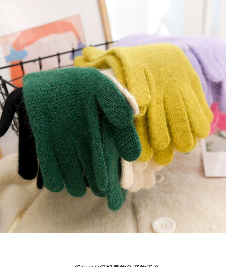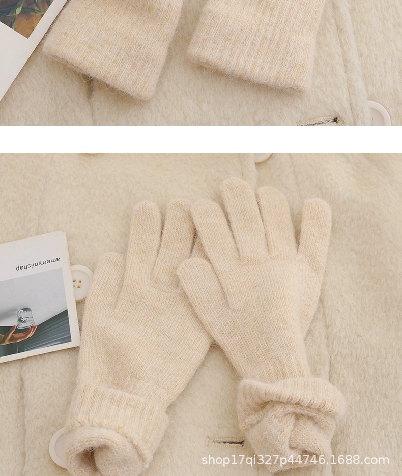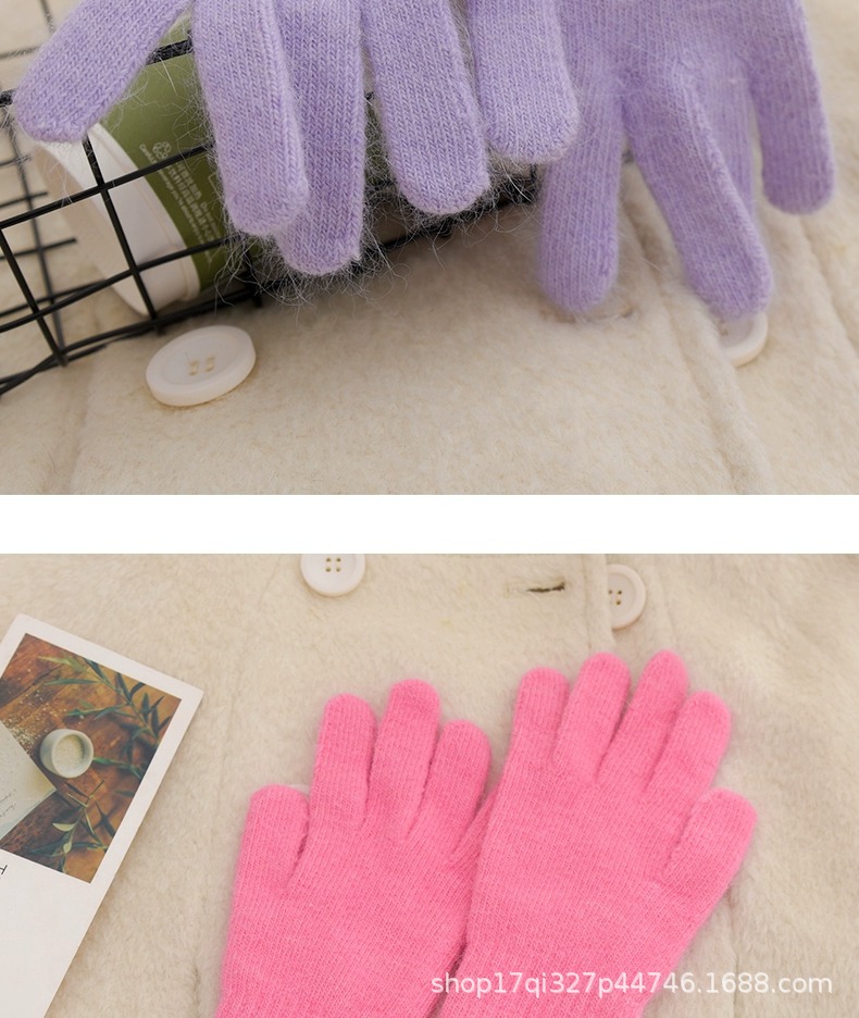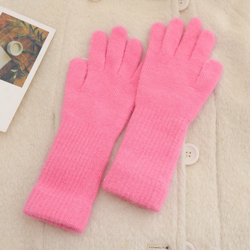 귀여운 따뜻한 토끼 머리 니트 양모 장갑 긴 소녀 핑크 두꺼운 부드러운 감기 다섯 손가락 터치 스크린 도매