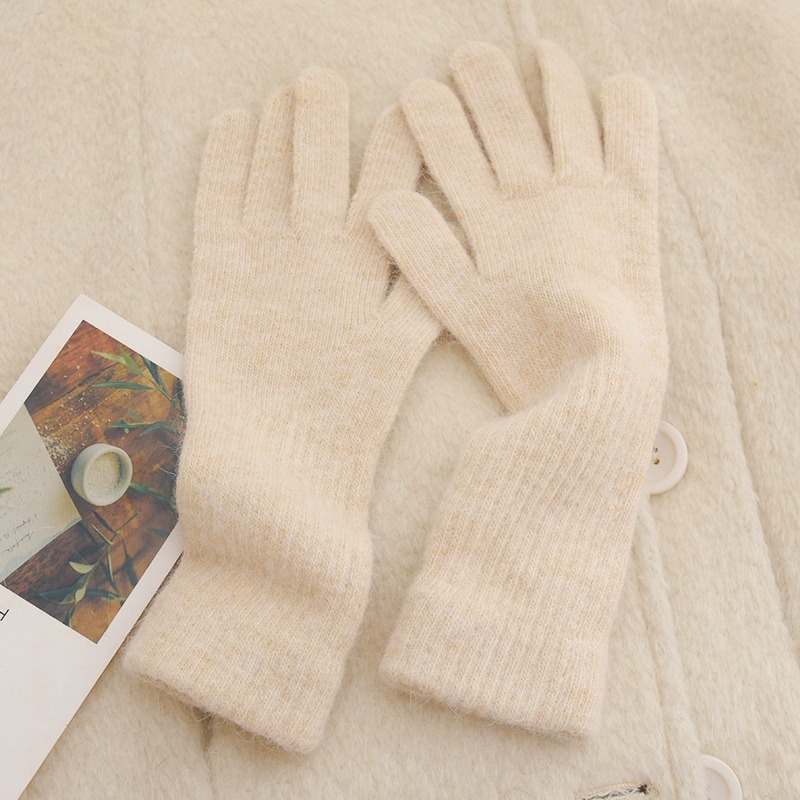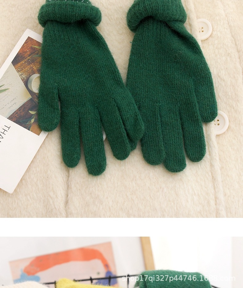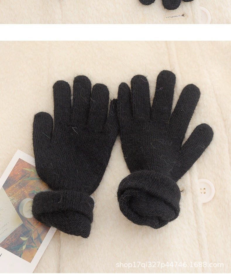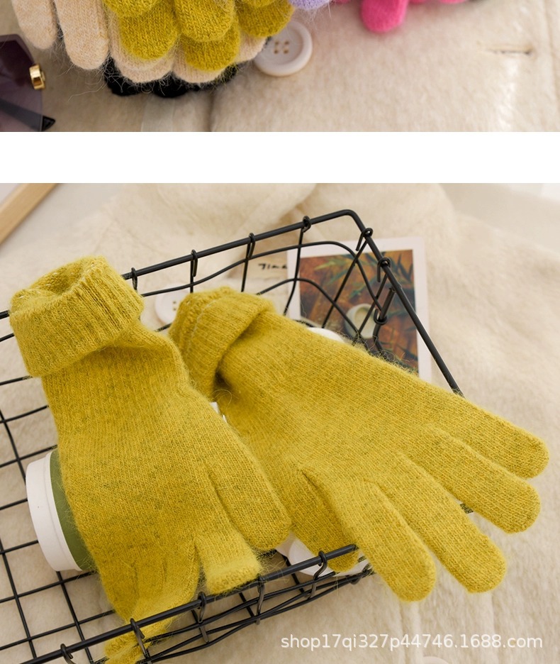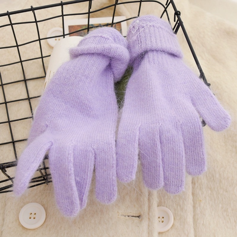 귀여운 따뜻한 토끼 머리 니트 양모 장갑 긴 소녀 핑크 두꺼운 부드러운 감기 다섯 손가락 터치 스크린 도매