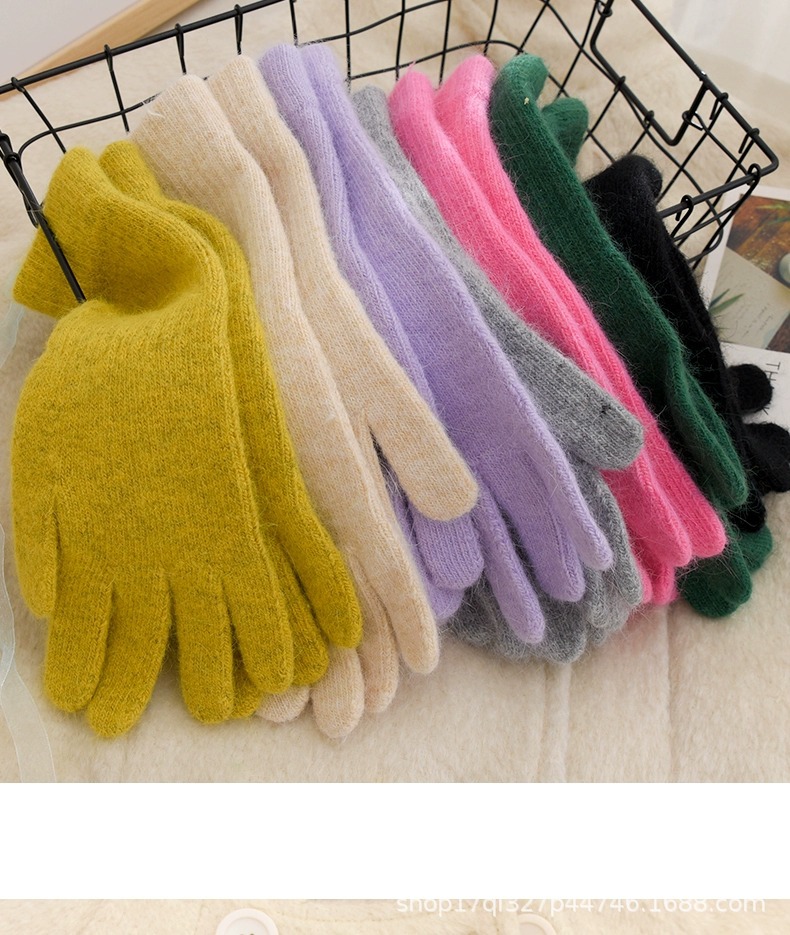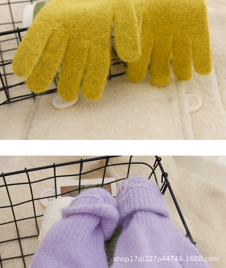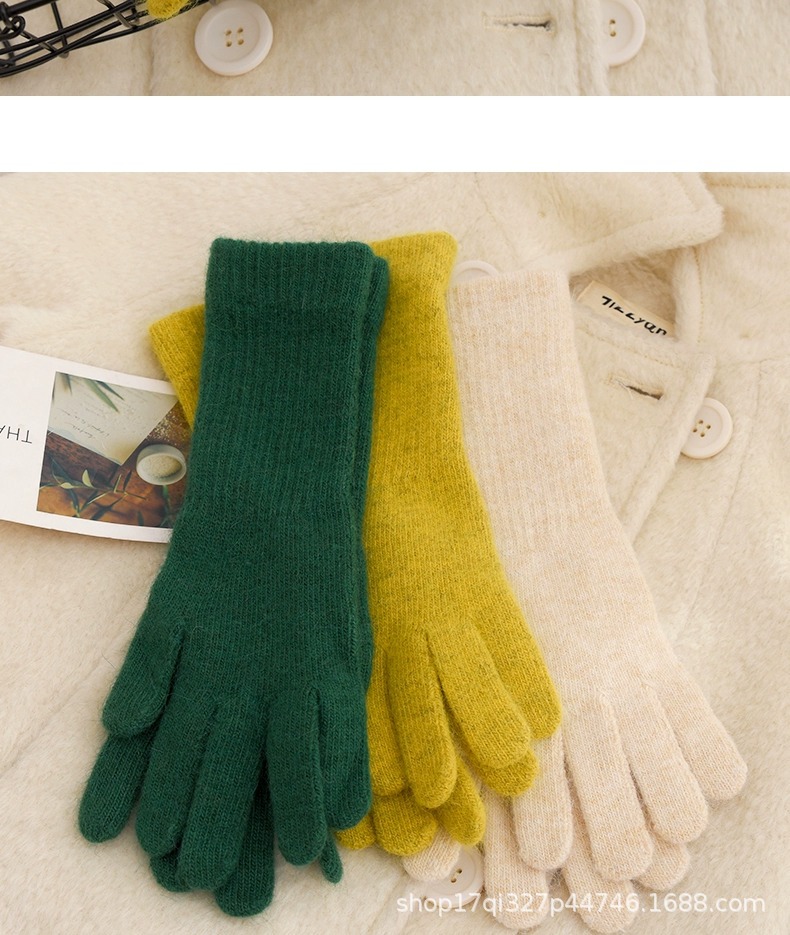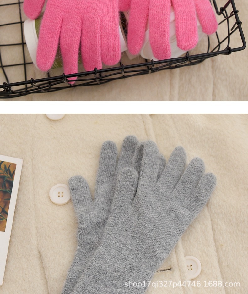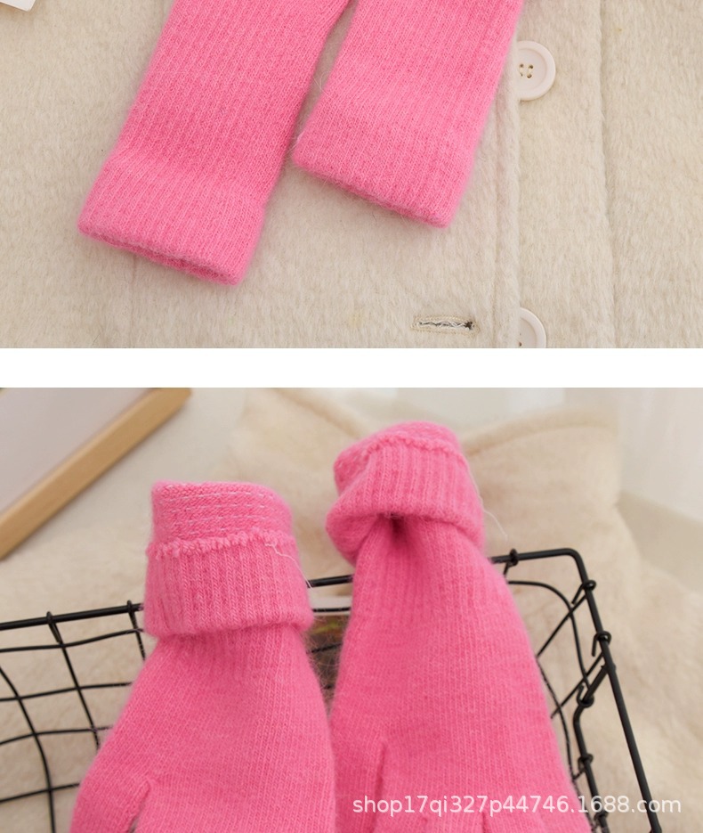 귀여운 따뜻한 토끼 머리 니트 양모 장갑 긴 소녀 핑크 두꺼운 부드러운 감기 다섯 손가락 터치 스크린 도매스토어 가기