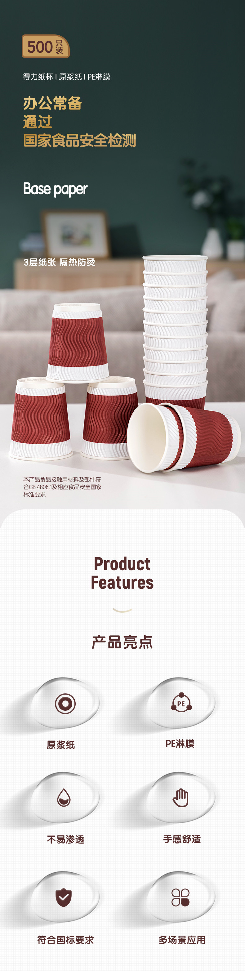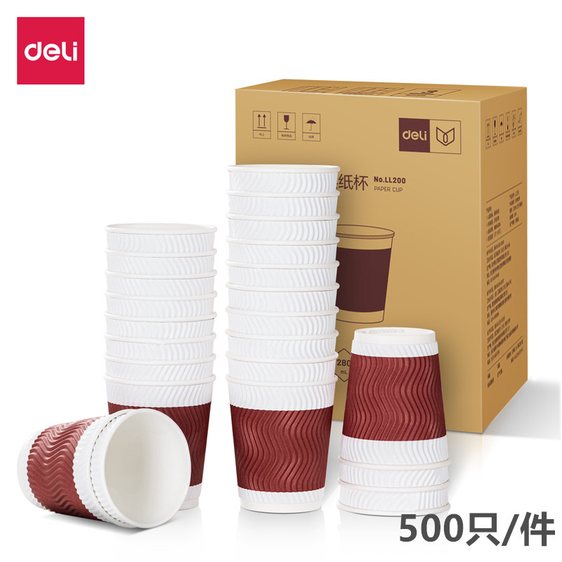 델리 LL200 더블 레이어 종이 컵 사무실 가정용 단열 두꺼운 종이 더블 레이어 종이 컵 커피 컵 찻잔 뜨거운 음료 컵스토어 가기