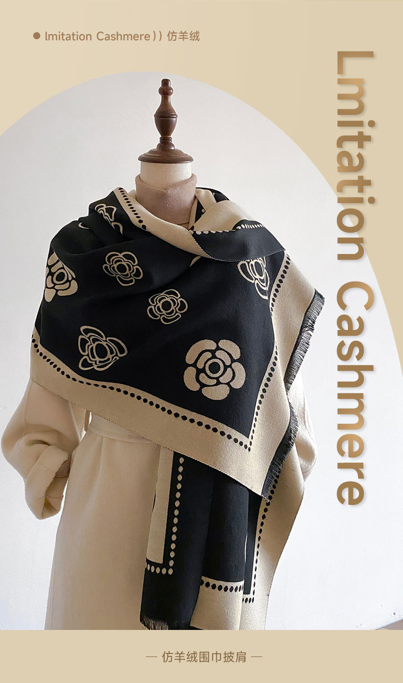 인기있는 동백 캐시미어 스카프 여성 장식 양면 숄 롱 자카드 모든 매치 따뜻한 스카프 도매스토어 가기