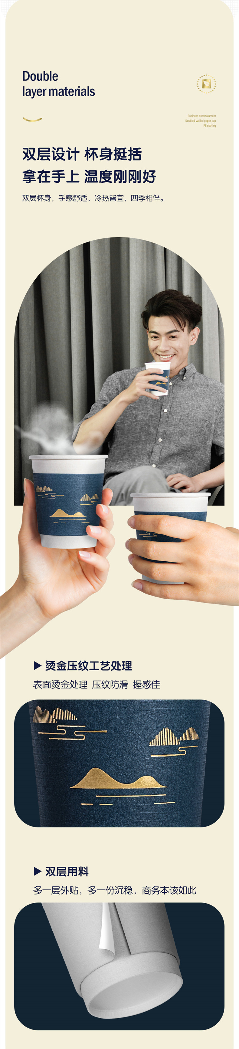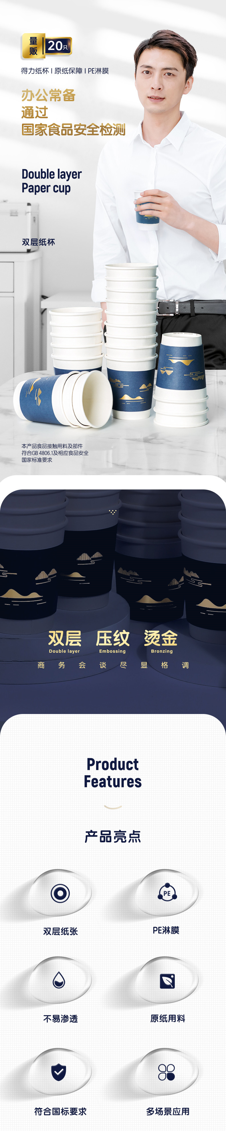 델리 19214 더블 레이어 종이컵 두꺼운 청동 절연 간단한 사무실 비즈니스 컵 가정용 커피 컵 찻잔