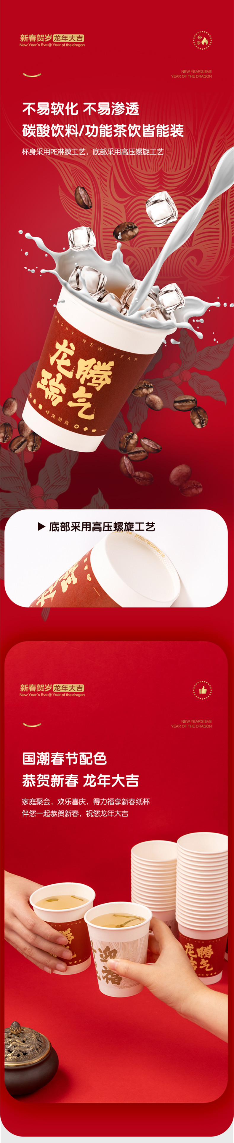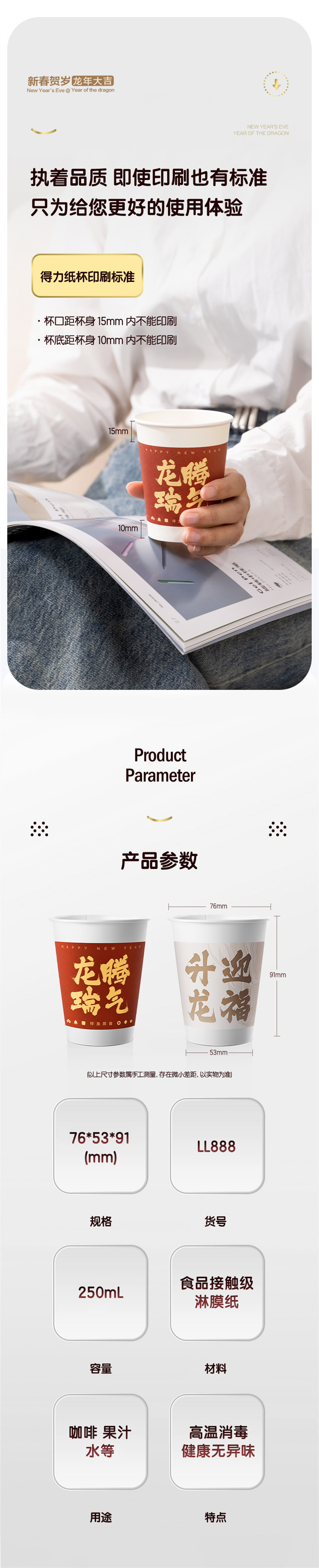 델리 LL888 종이컵 2024 년 축하 일회용 종이컵 새해 축하 홈 웨딩 티컵 새해 종이컵스토어 가기