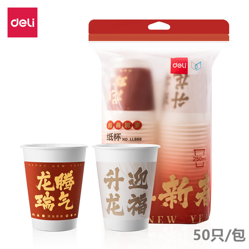 델리 LL888 종이컵 2024 년 축하 일회용 종이컵 새해 축하 홈 웨딩 티컵 새해 종이컵