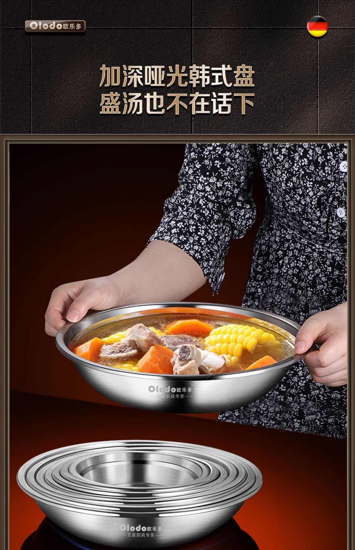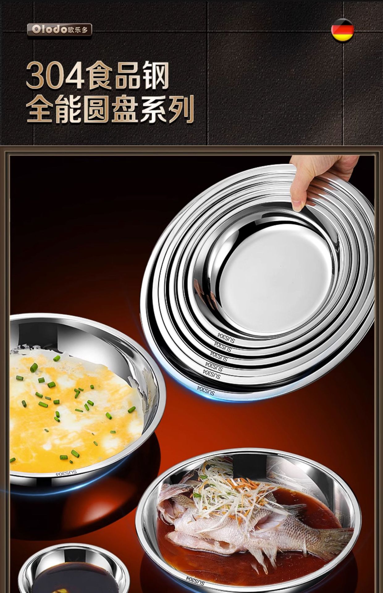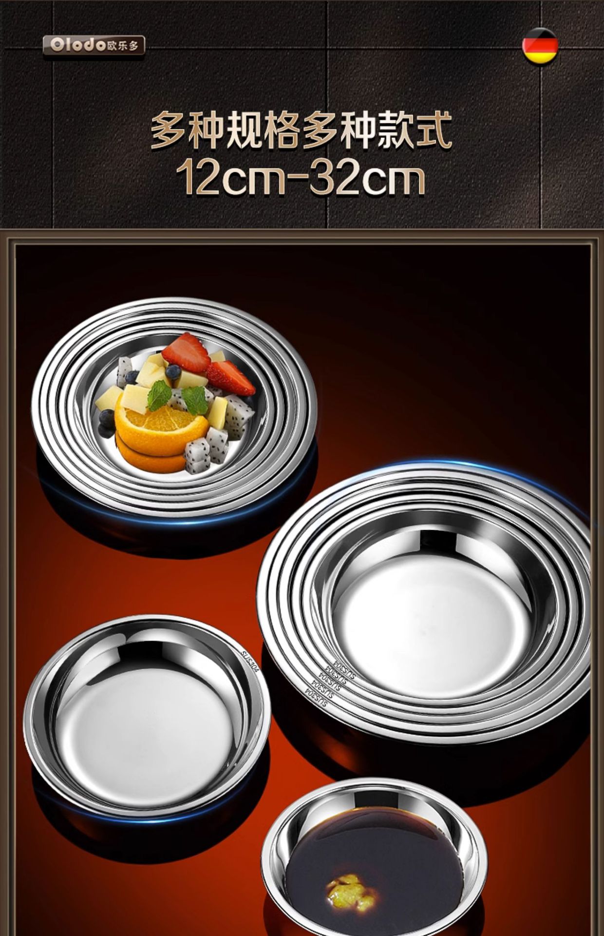 독일 304 스테인레스 스틸 플레이트 가정용 접시 디스크 뜨거운 냄비 상업 접시 두꺼운 둥근 접시 찜 트레이스토어 가기