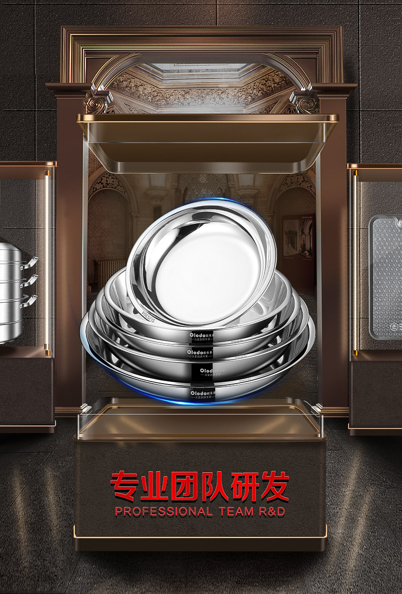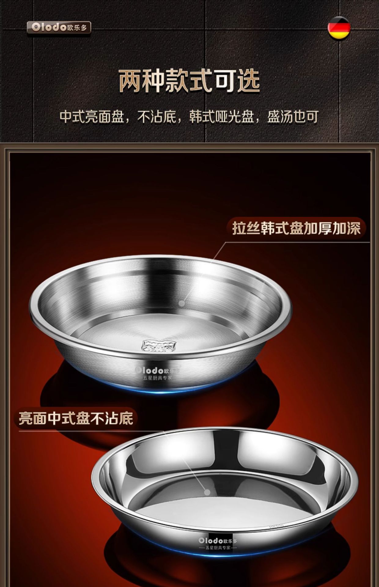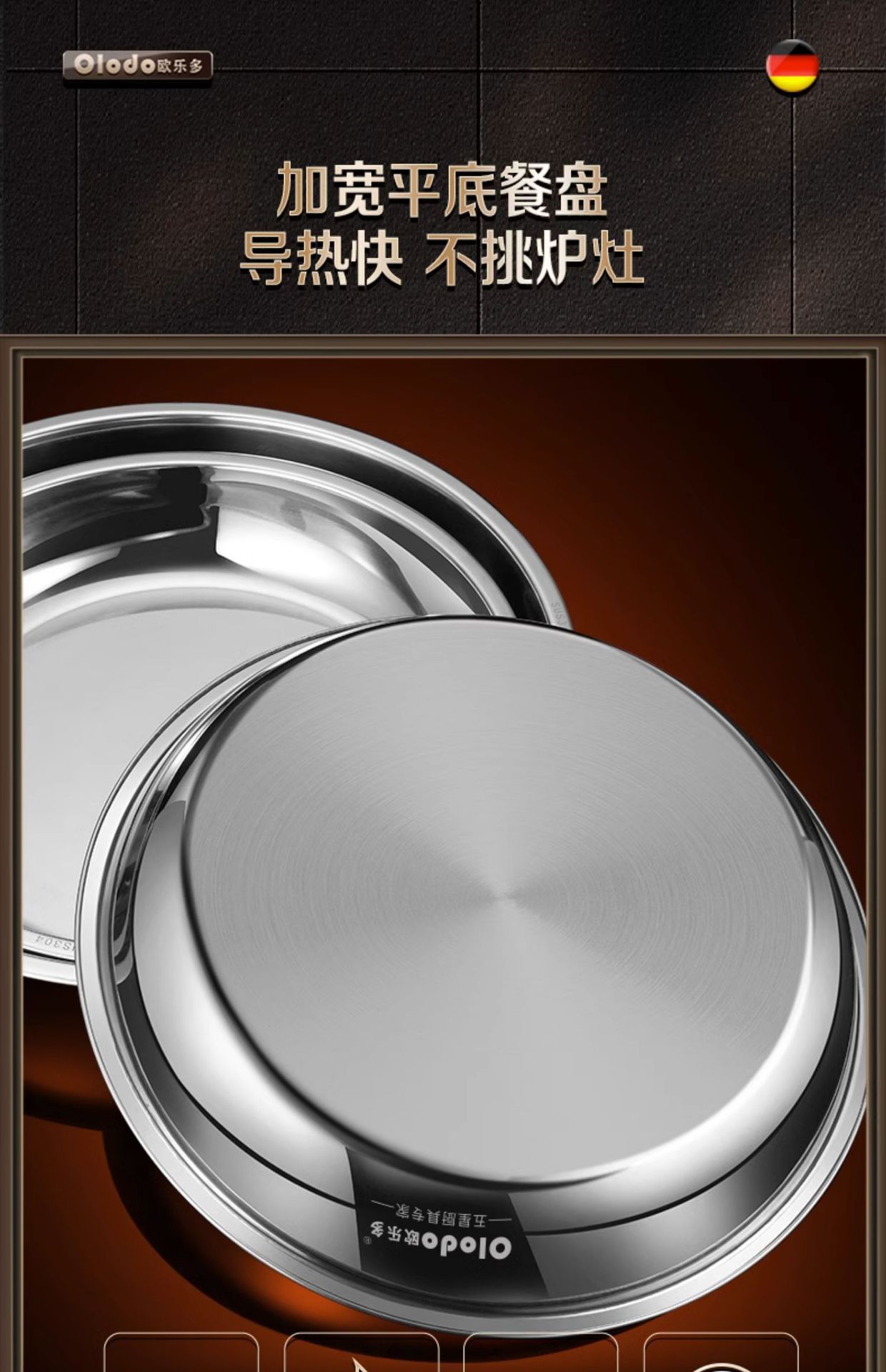 독일 304 스테인레스 스틸 플레이트 가정용 접시 디스크 뜨거운 냄비 상업 접시 두꺼운 둥근 접시 찜 트레이스토어 가기
