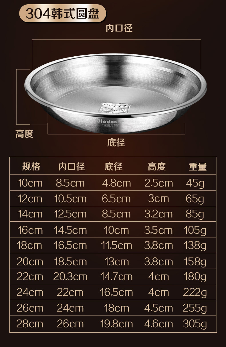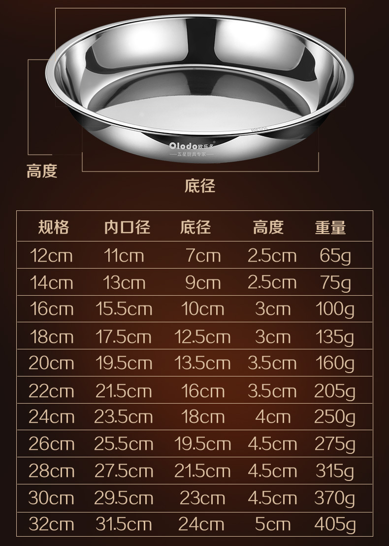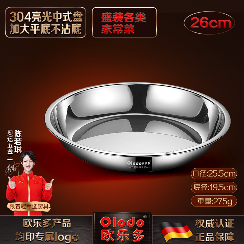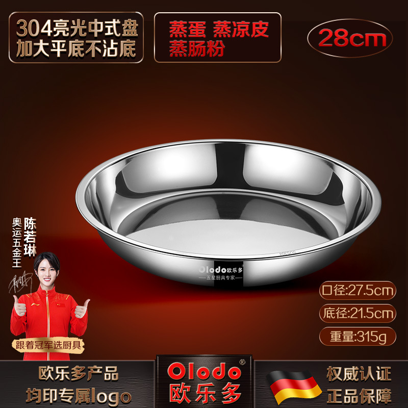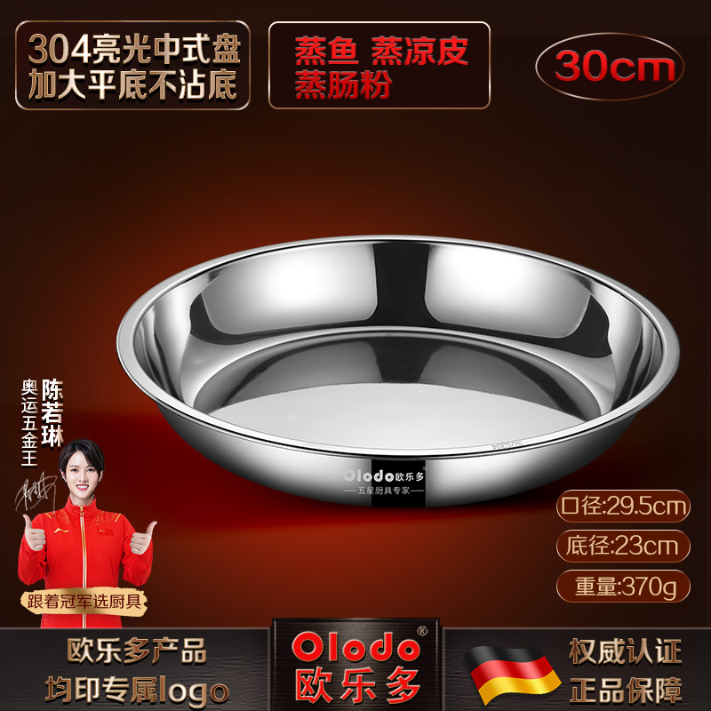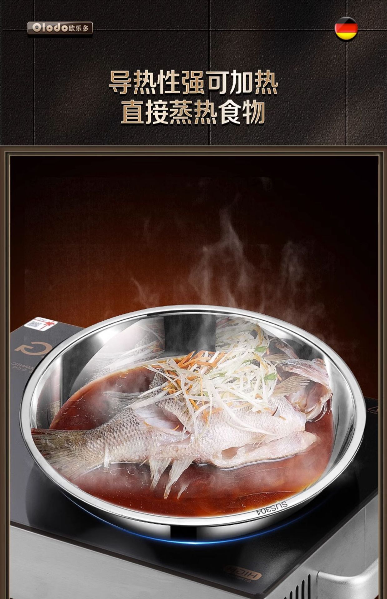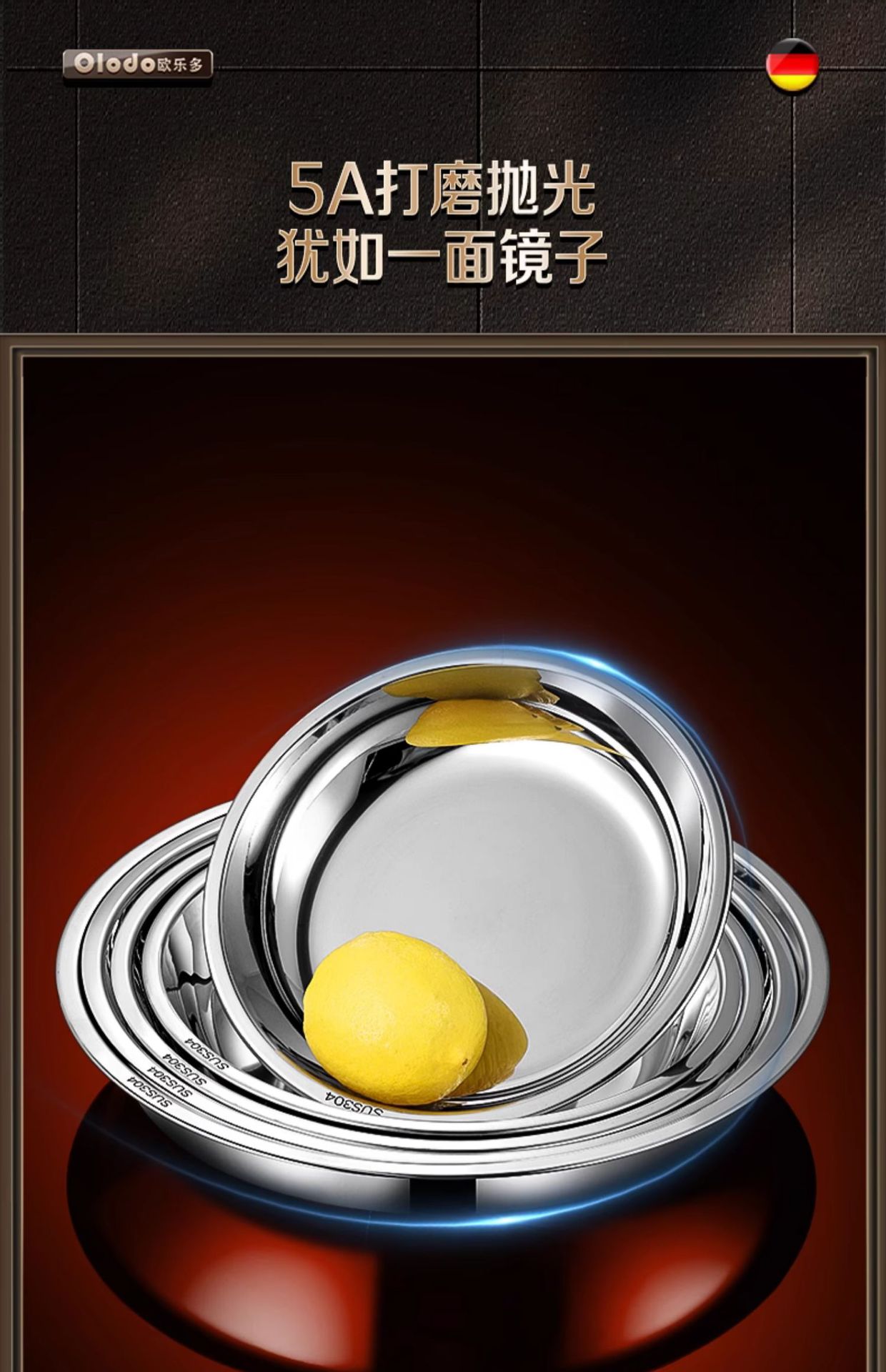 독일 304 스테인레스 스틸 플레이트 가정용 접시 디스크 뜨거운 냄비 상업 접시 두꺼운 둥근 접시 찜 트레이