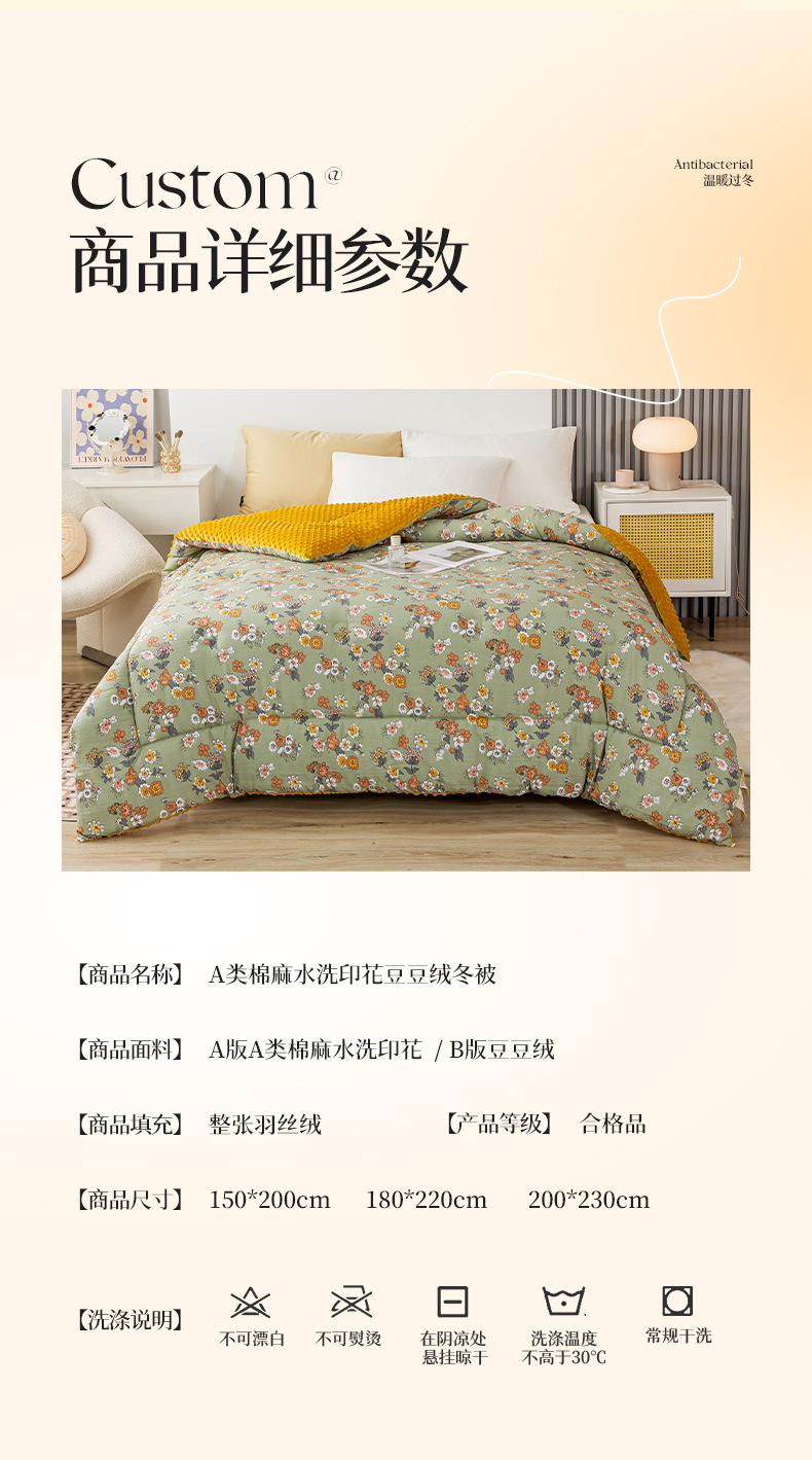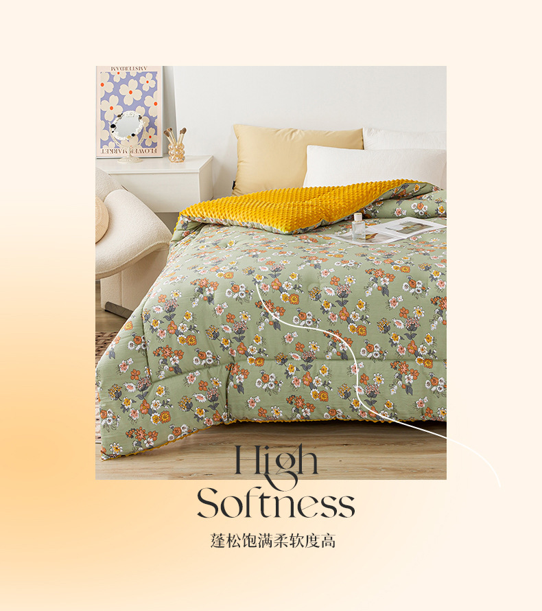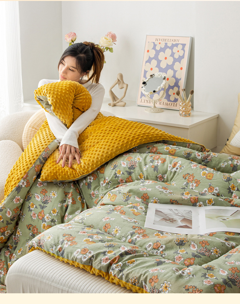 클래스 A 더블 레이어 면사 콩 이불 가을과 겨울 두꺼운 이불 코어 가정용 따뜻한 겨울 싱글 및 더블 대두 이불스토어 가기
