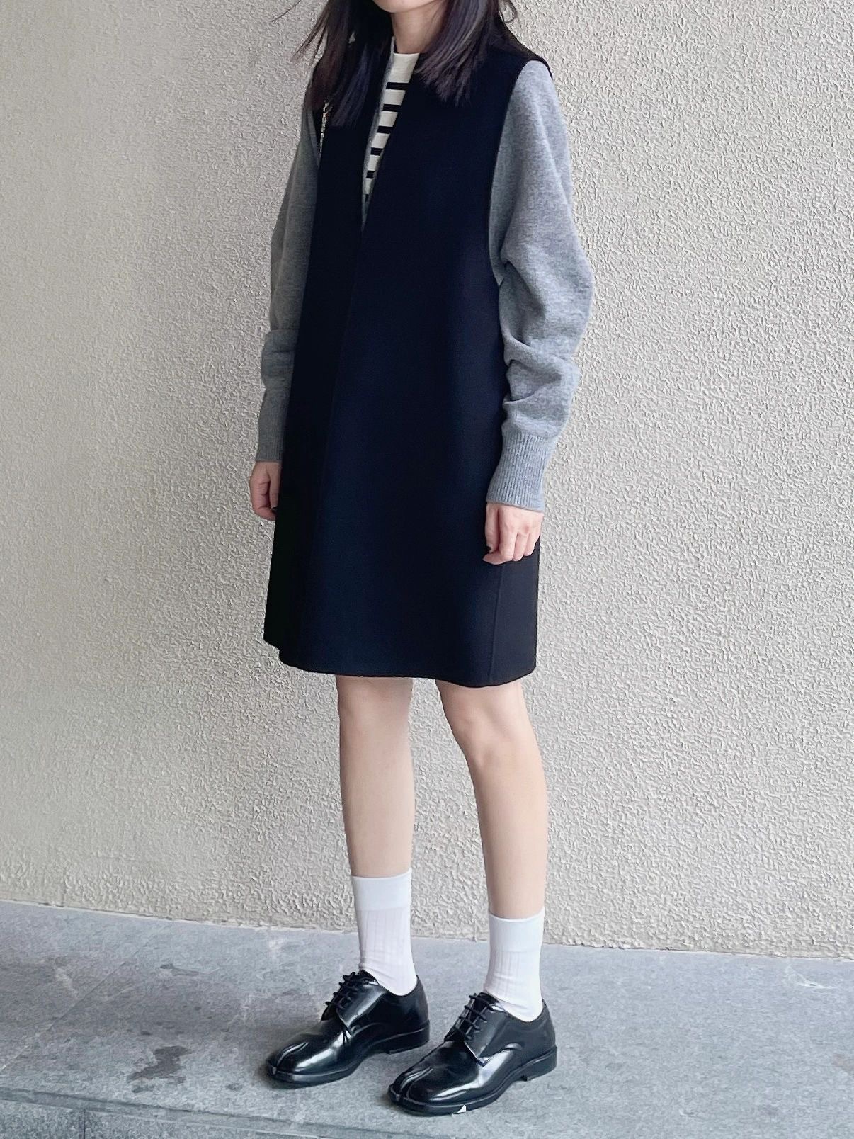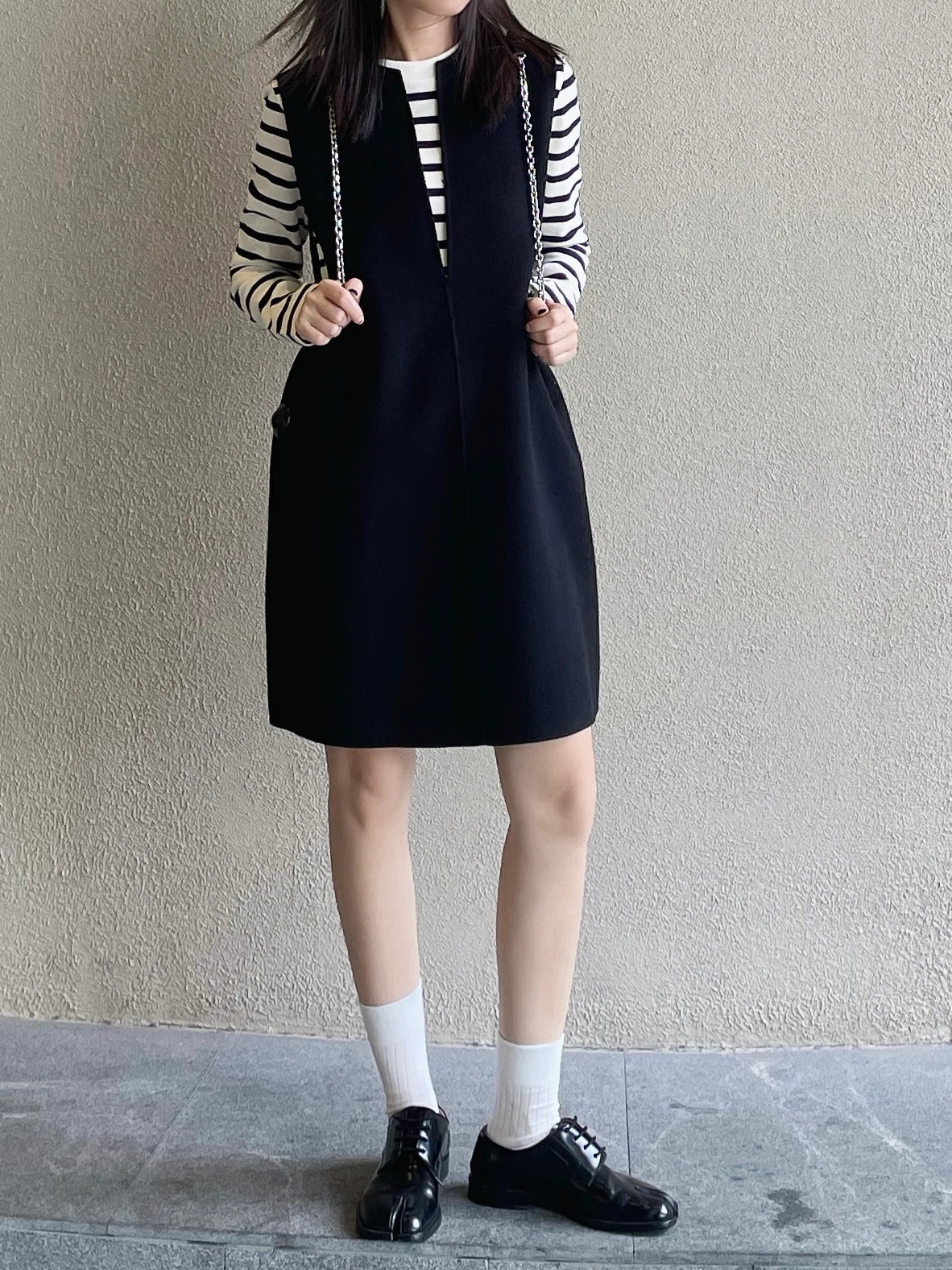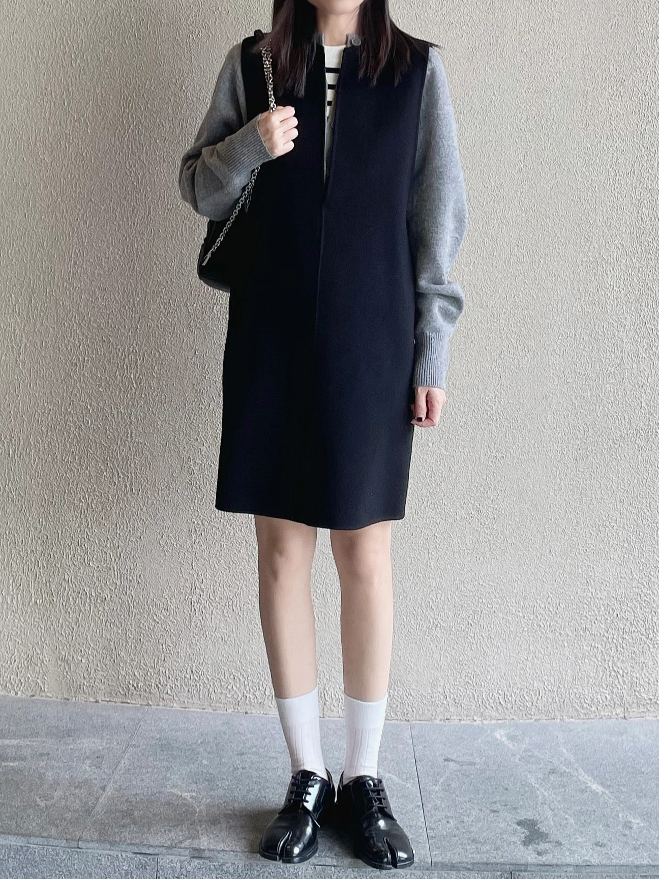 가을과 겨울을위한 여성용 V 넥 민소매 양모 블렌드 양면 원피스 중간 길이의 검은 원피스스토어 가기