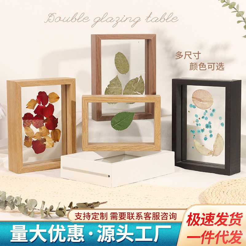 나무 말린 꽃 사진 프레임 중공 입체 diy 양면 유리 테이블 사진 프레임 투명 프레임 표본 프레임스토어 가기
