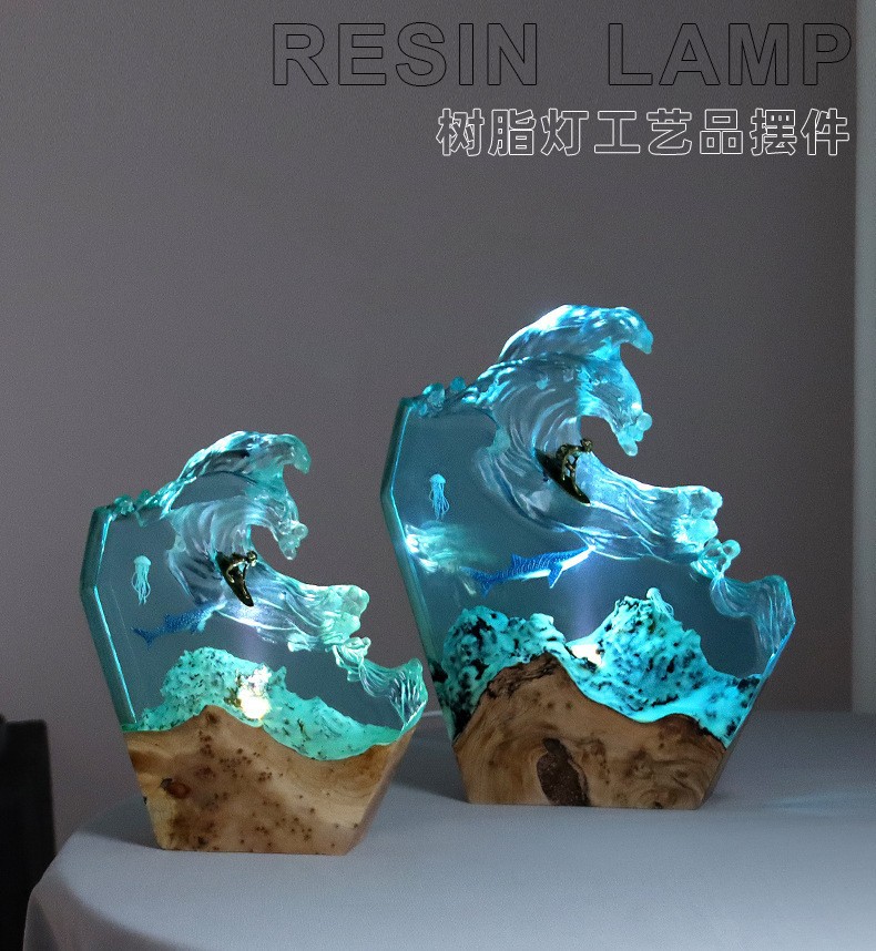 가구 장식 고래 해파리 바다 서핑 사무실 데스크탑 아트 단단한 나무 수지 야간 조명 장식 선물