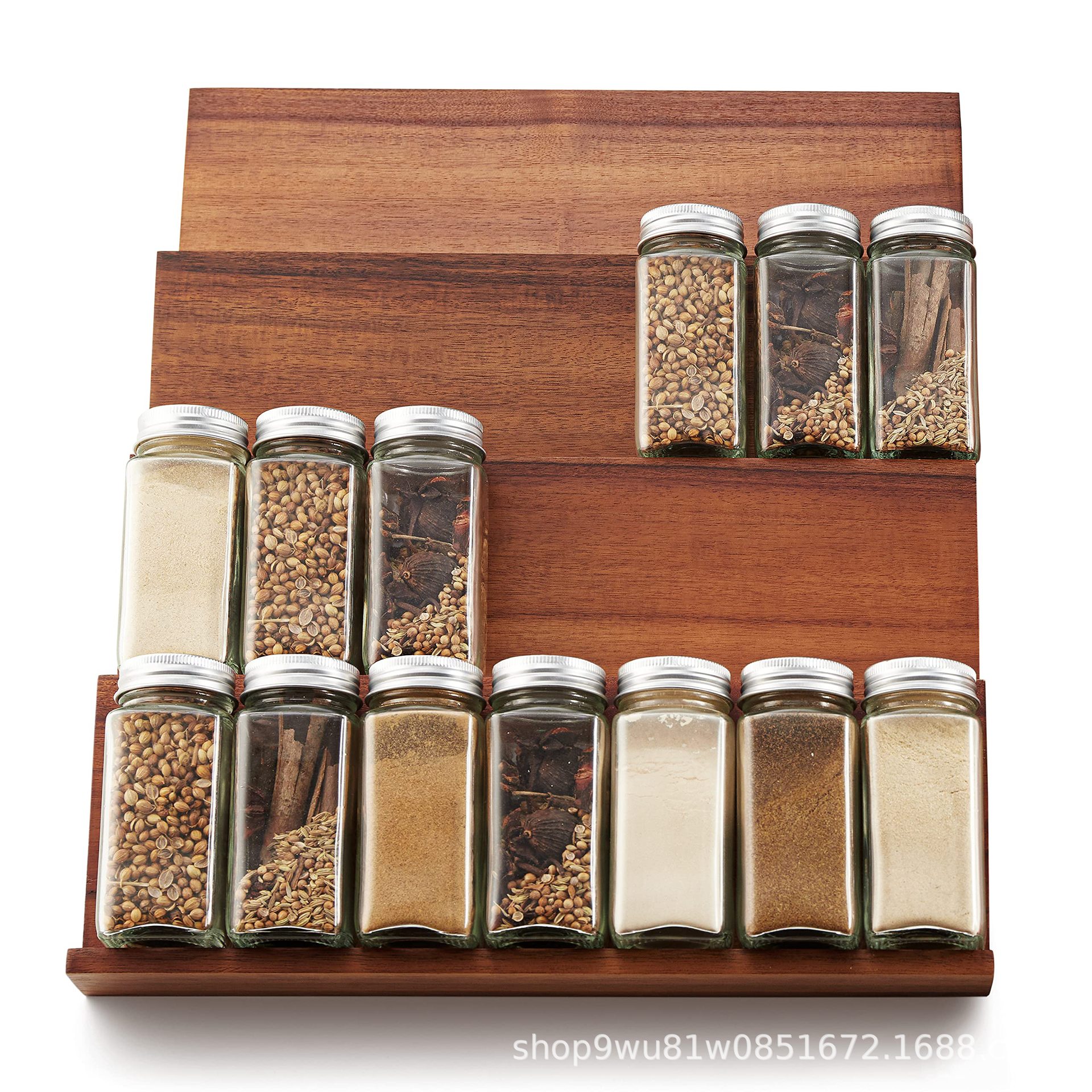 아마존 신제품 대나무 조미료 선반 무백색 아카시아 나무 다기능 4단 향신료 선반 수납함 주방 보관